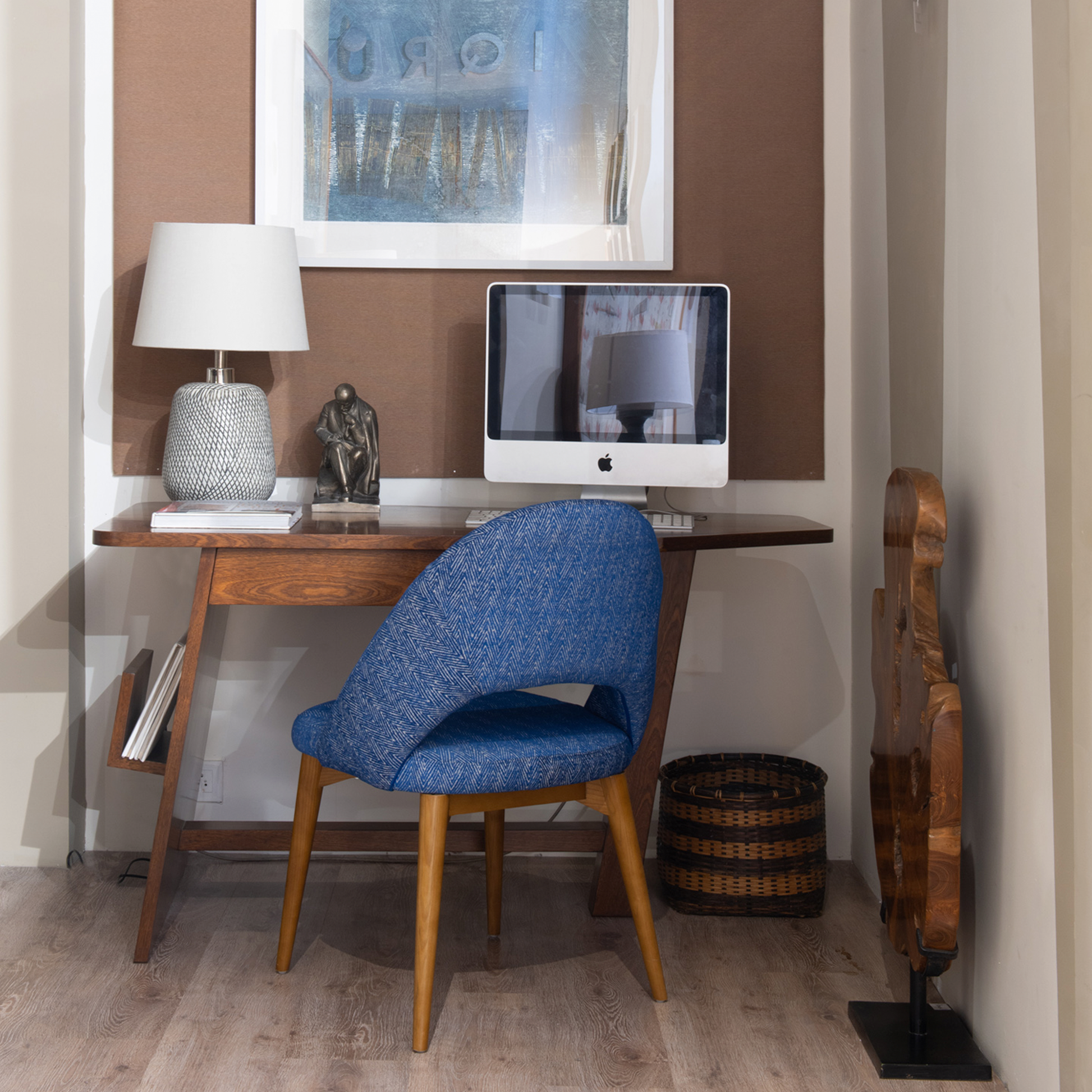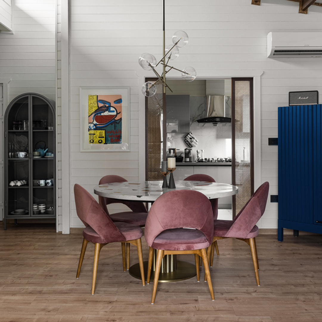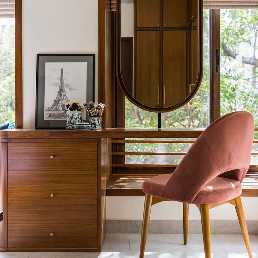 In architect Faisal Manzur’s Chennai home design, the Anton Chair takes on a different role. It is thoughtfully placed at a bedroom vanity—its refined silhouette echoing the mid-century influences that run through the apartment. Anton's graceful profile and plush seat offer both functionality and a moment of stillness, balancing the layered aesthetic of a space designed for multiple generations.