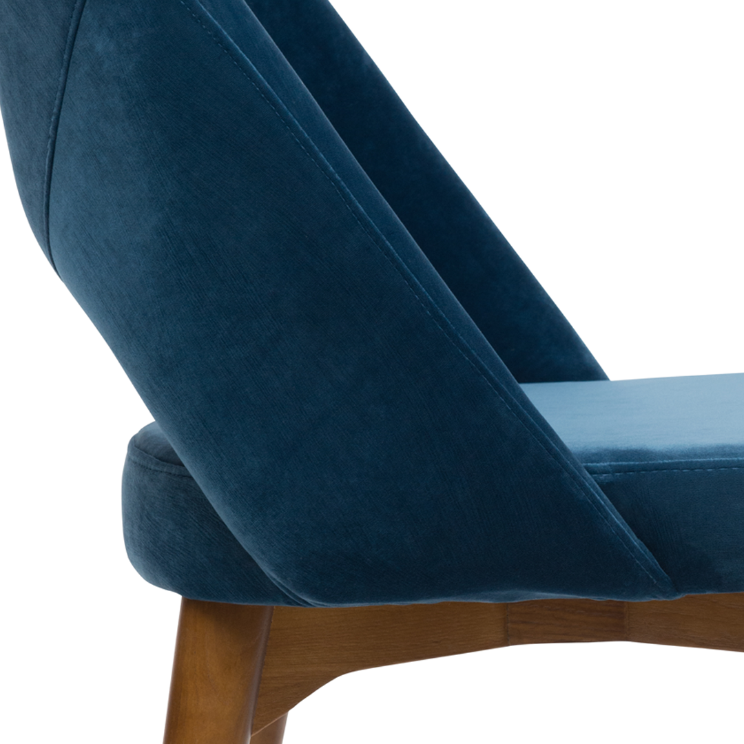 Plush upholstery meets a meticulously crafted frame, where each leg’s precise angle contributes to both stability and sculptural rhythm.