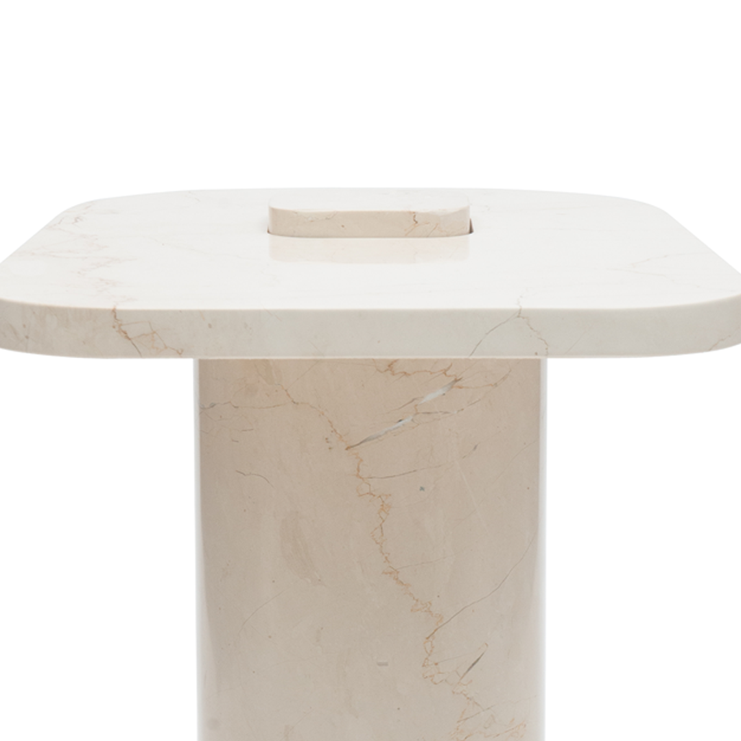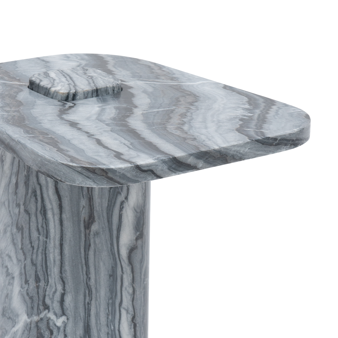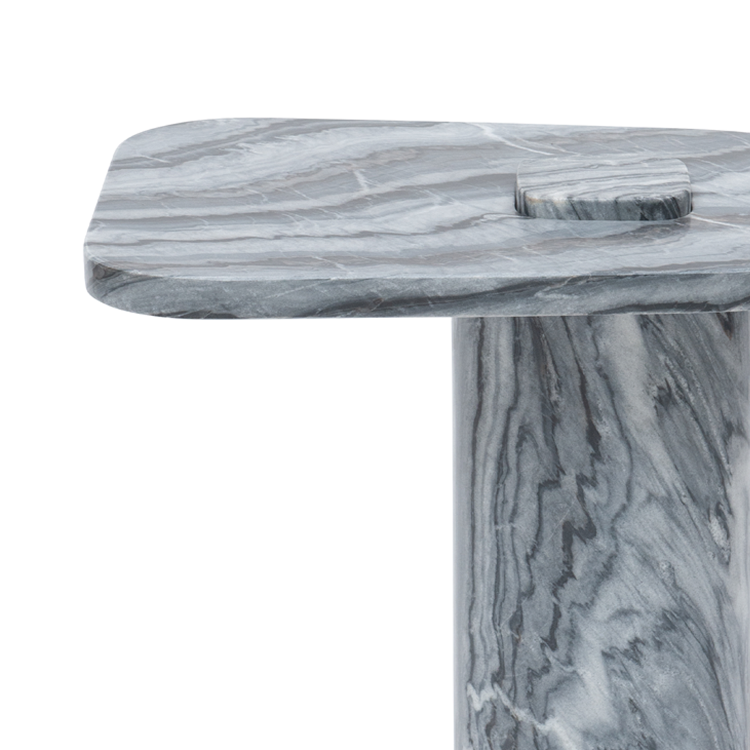 Sharp, compact, and engineered to purpose: the Bolt starts from the idea of a nut and bolt—and ends up reimagined as a side table. Available in Italian beige or grey‑blue marble, its sleek top and minimal proportions make it versatile beside a lounge chair or between slipper seats. A small table with architectural precision—and visual clarity.
