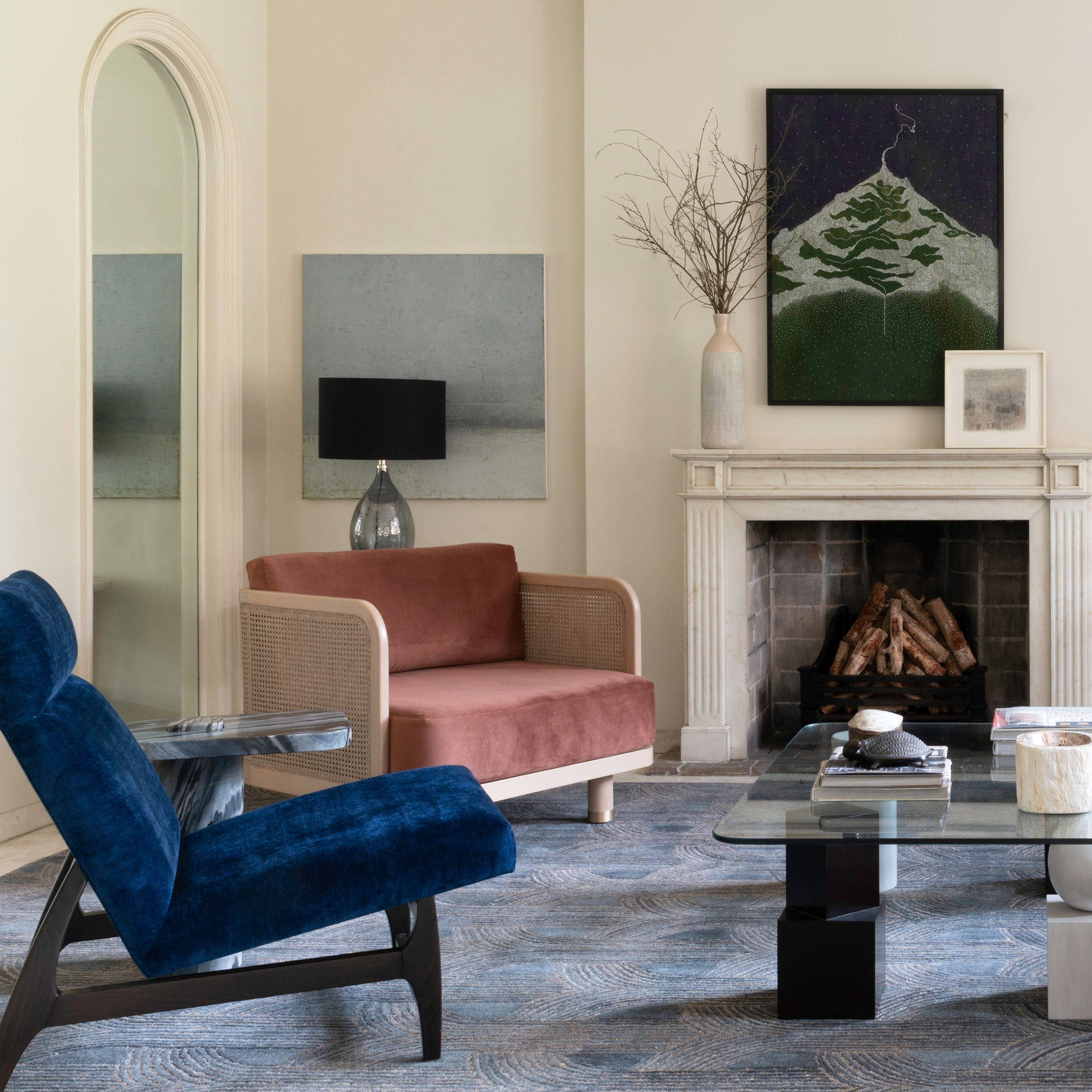 Welcome to our Queen’s Gambit living room—a space where refined design meets thoughtful composition. The elegant Bombay armchair, with its rattan detailing and plush velvet seat, pairs beautifully with the chess-inspired Hartwig coffee table. The clean-lined Brooklyn sofa and modern Lamar shelf bring a sense of balance, while the sculptural Bolt marble accent table completes the setting with a graceful final touch.