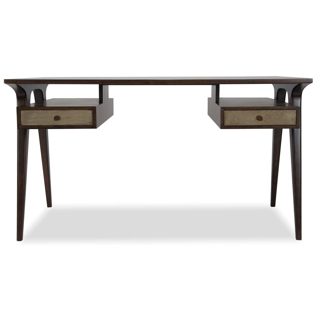 Inspired by the clarity and conviction of mid-century design, the Caitlyn Desk distills sophistication into clean lines and deliberate details. Its sleek polish, offset by the warmth of brass, speaks to a quiet authority, crafted for those who appreciate elegance in function.