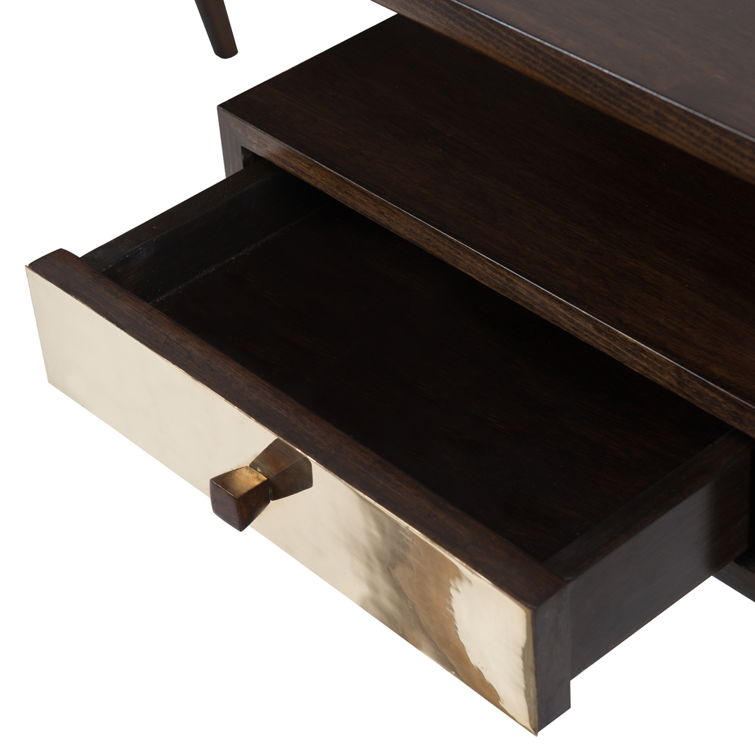 Inspired by the clarity and conviction of mid-century design, the Caitlyn Desk distills sophistication into clean lines and deliberate details. Its sleek polish, offset by the warmth of brass, speaks to a quiet authority—crafted for those who appreciate elegance in function.
