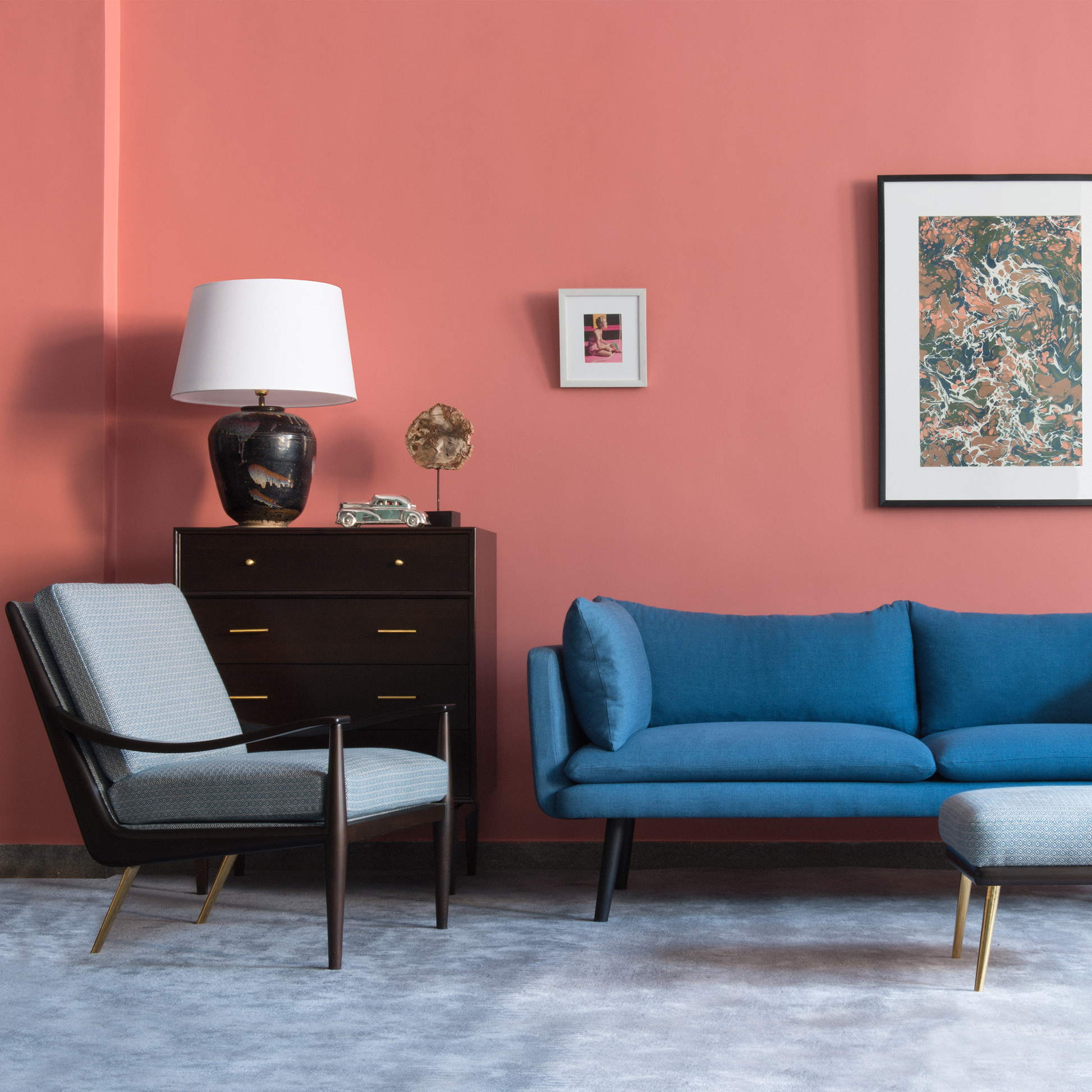 Offered in both leather and fabric upholstery, the armchair and footstool adapt to your personal style — combining tailored comfort with versatile appeal.