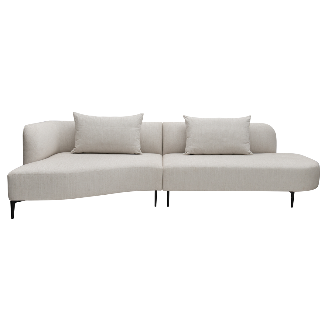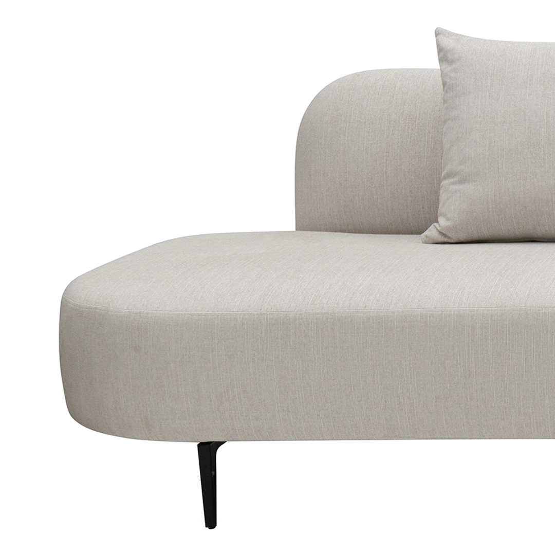 The Curve sofa captivates with its graceful, asymmetrical silhouette and flowing organic lines. Its plush cushioning offer luxurious comfort, while sleek black metal legs provide contemporary contrast. A perfect statement piece that combines modern elegance with inviting softness for any sophisticated living space.