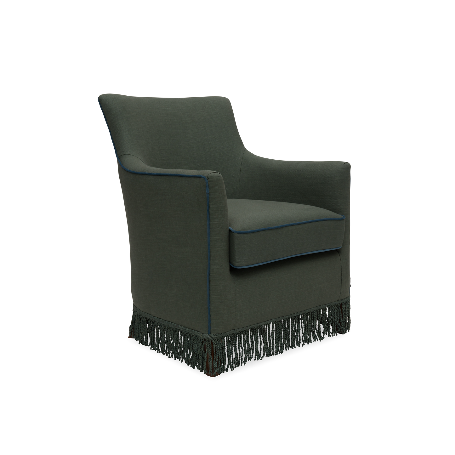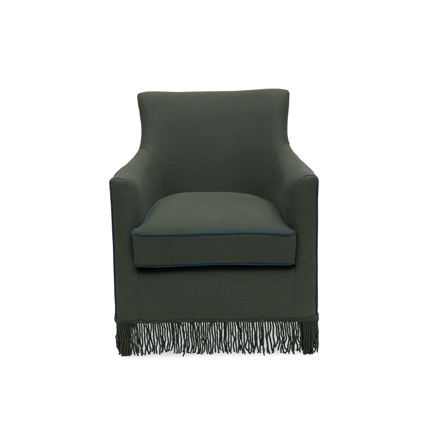 Comfort and luxury combined: The Carter chair will invite hours of lounging and relaxing with its soft cushioning and arms. Available in contrasting piping and fringe detail for extra impact.