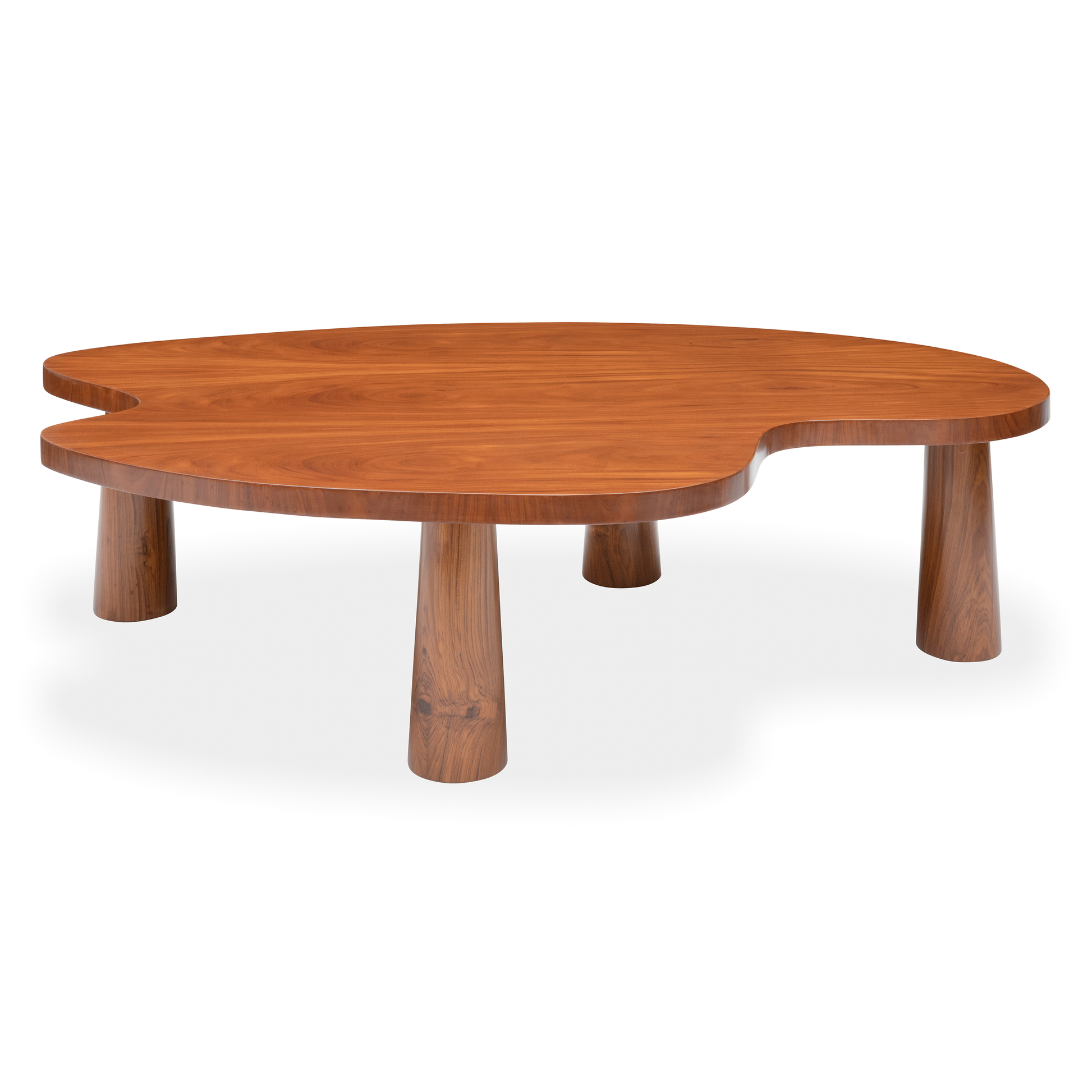 The beautifully shaped organic top and generous legs are carved by our master craftsmen. Photographed in Light Afromosia and Burl polishes. No two pieces are the same…