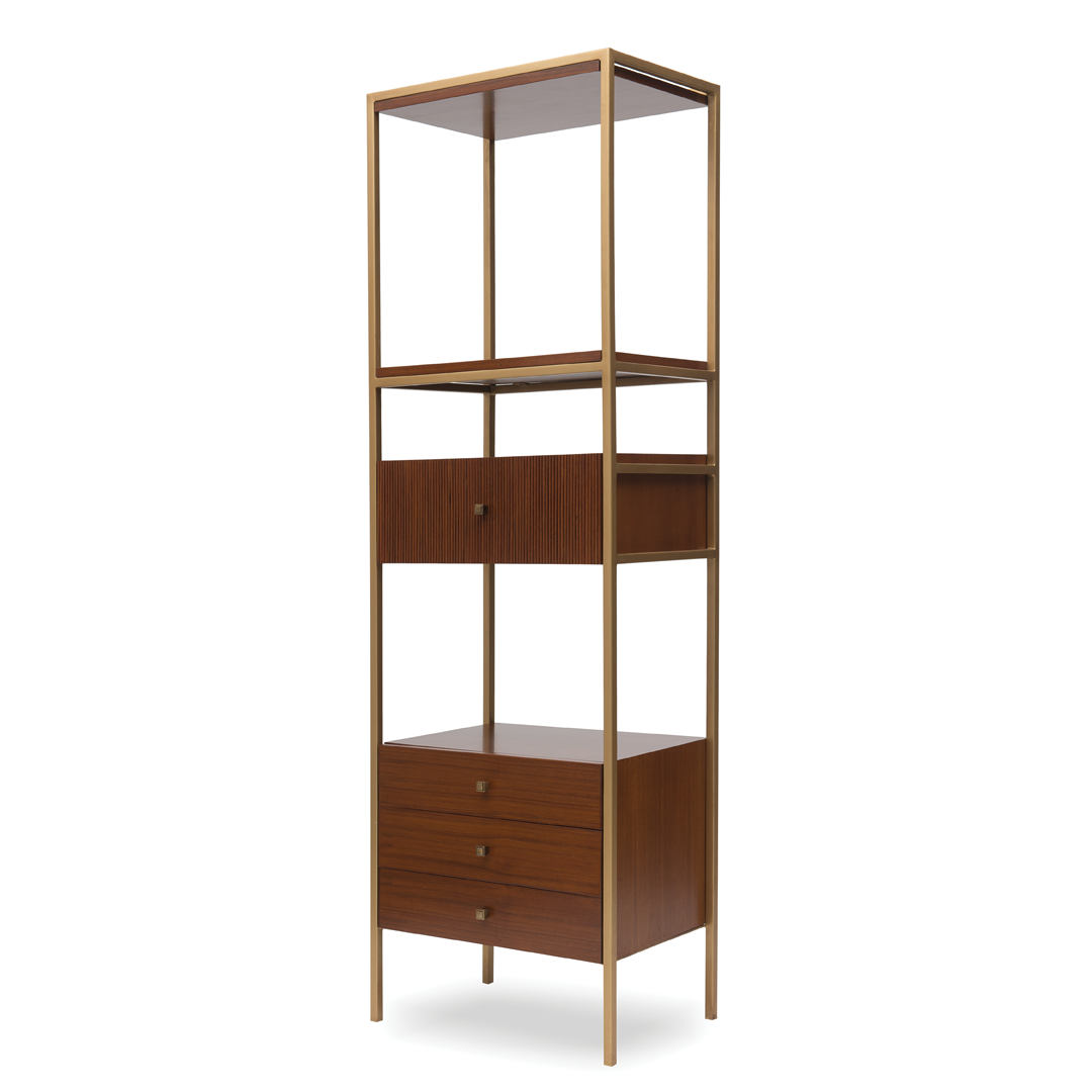 Inspired by functional elegance, the single shelf module presents a sculptural stance. Slim yet resolute, it turns storage into display—its form inviting both utility and aesthetic consideration.