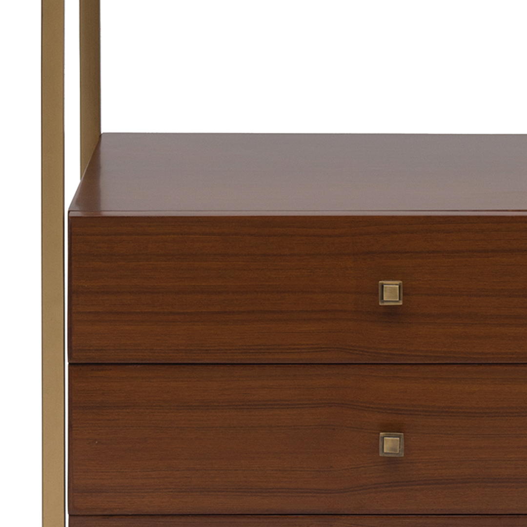 The Chandigarh’s linear form and smooth natural teak polish are uplifted by its brass finished frame.