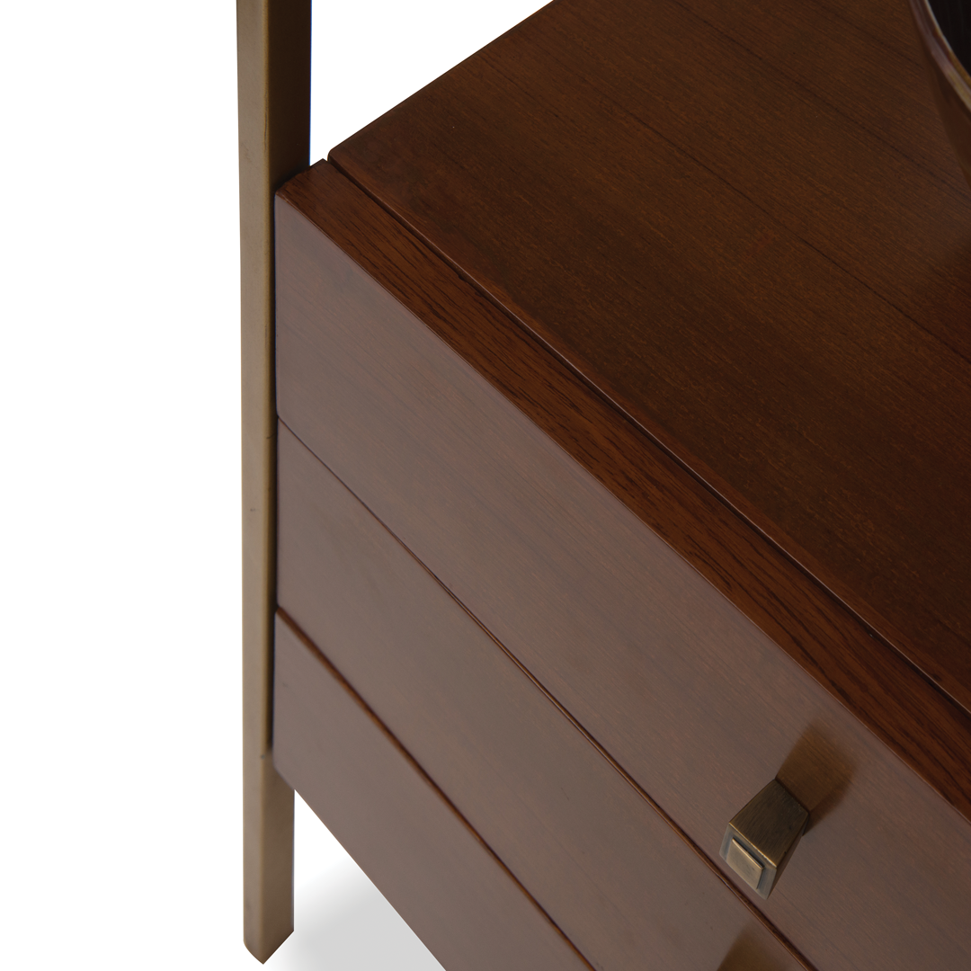 The Chandigarh’s linear form and smooth natural teak polish are uplifted by its brass finished frame.