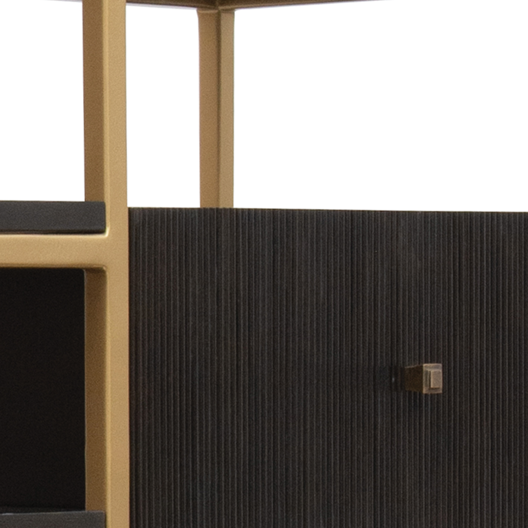 Standing taller and wider, the 2.1‑Shelf module combines the Chandigarh collection’s signature warmth and structure in a more pronounced form. Finished in natural teak, framed in brass, it extends the storage story—whether as a room separator or the backbone of a display wall. With its size and polished restraint, it speaks volumes about design rooted in legacy yet free in expression.