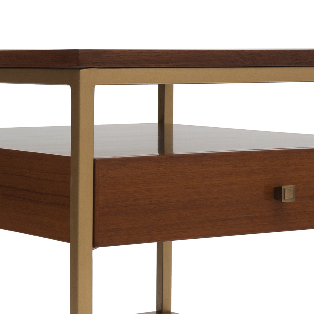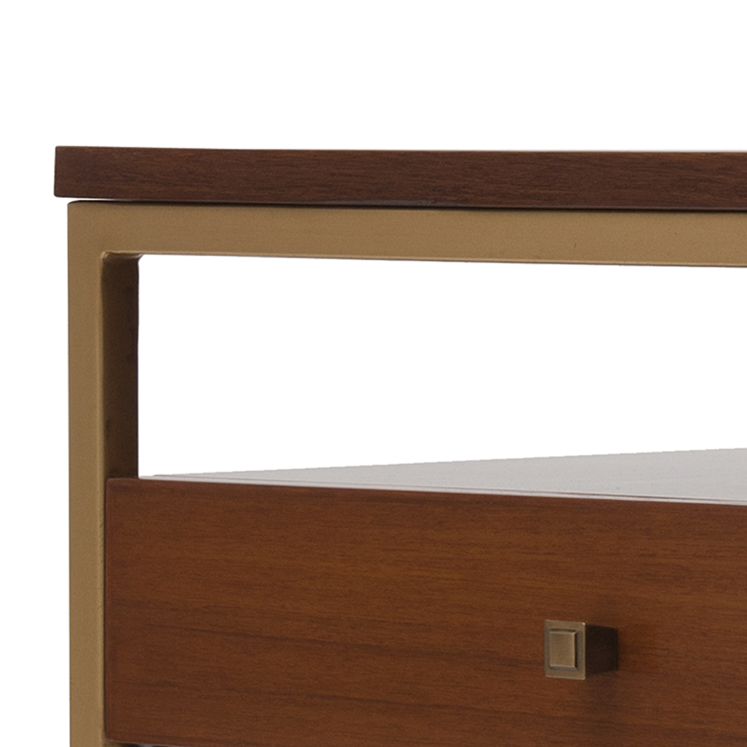 Inspired by the stylish 1950s home of General Tara Singh Bal (Iqrup’s grandfather), the Chandigarh Side Table channels a nostalgia that’s both personal and polished. Crafted from warm teak and elevated by a brass‑finished frame, its linear form offers quiet sophistication. Whether alongside a sofa, in a quiet corner, or paired within a modular arrangement, the piece delivers refined function—rooted in heritage, designed for today.