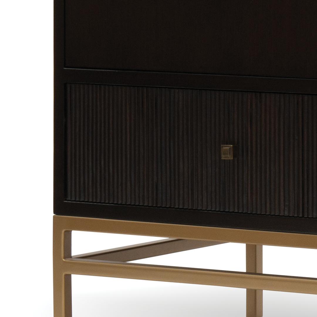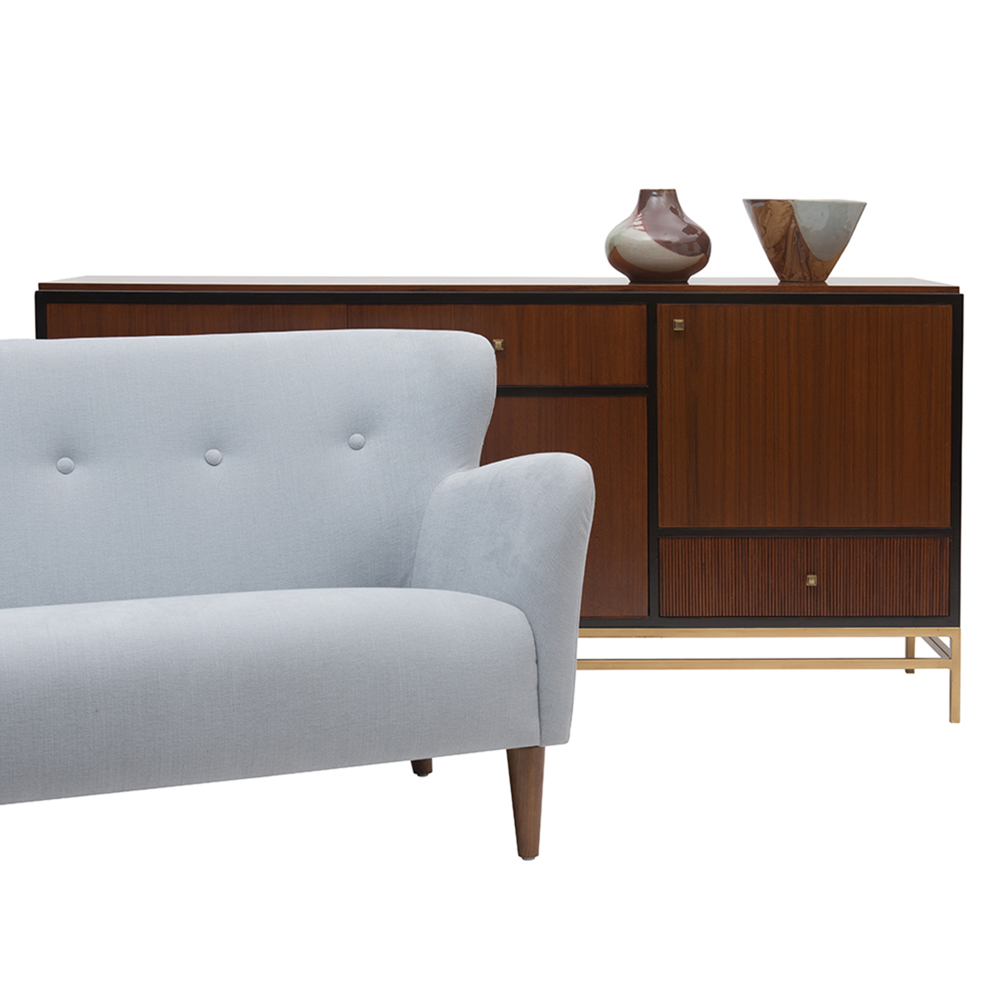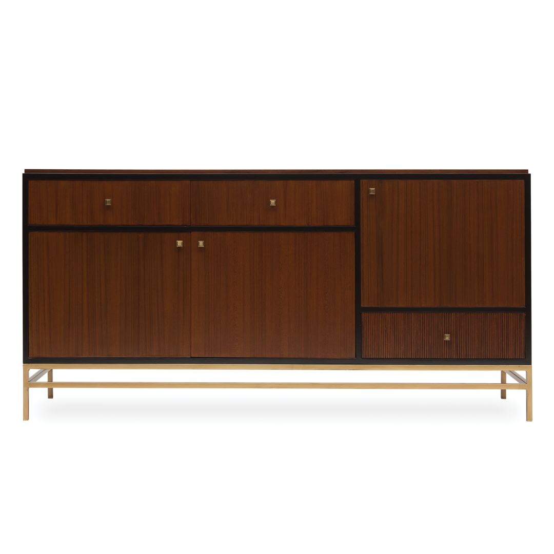 Inspired by a mid-century tableau, the sideboard evokes a time of sophistication and formality. Its extended form and refined framework offer both display and concealment, giving rooms a sense of rhythm and refinement.