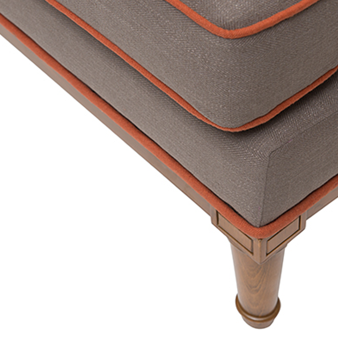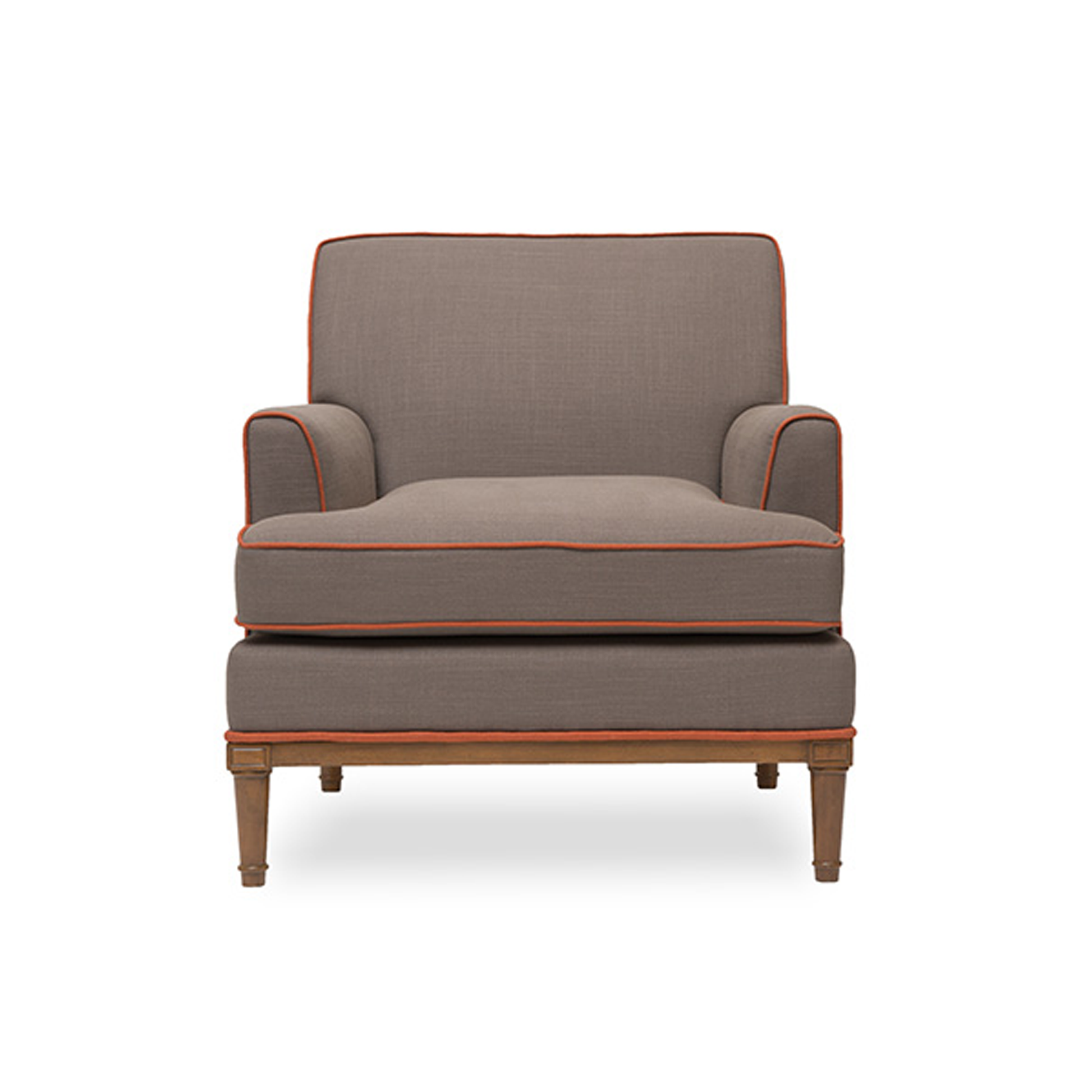 All the refined details of its sofa counterpart, distilled into a singular form. The Chelsea Armchair features crisp lines, elegantly turned elm-finished legs, and contrasting piping—a harmony of neoclassical poise and contemporary restraint . Built with classic spring upholstery, foam filling, and a fixed back, it maintains its shape and comfort with ease. A statement of refinement in both intimate corners and grander gatherings.