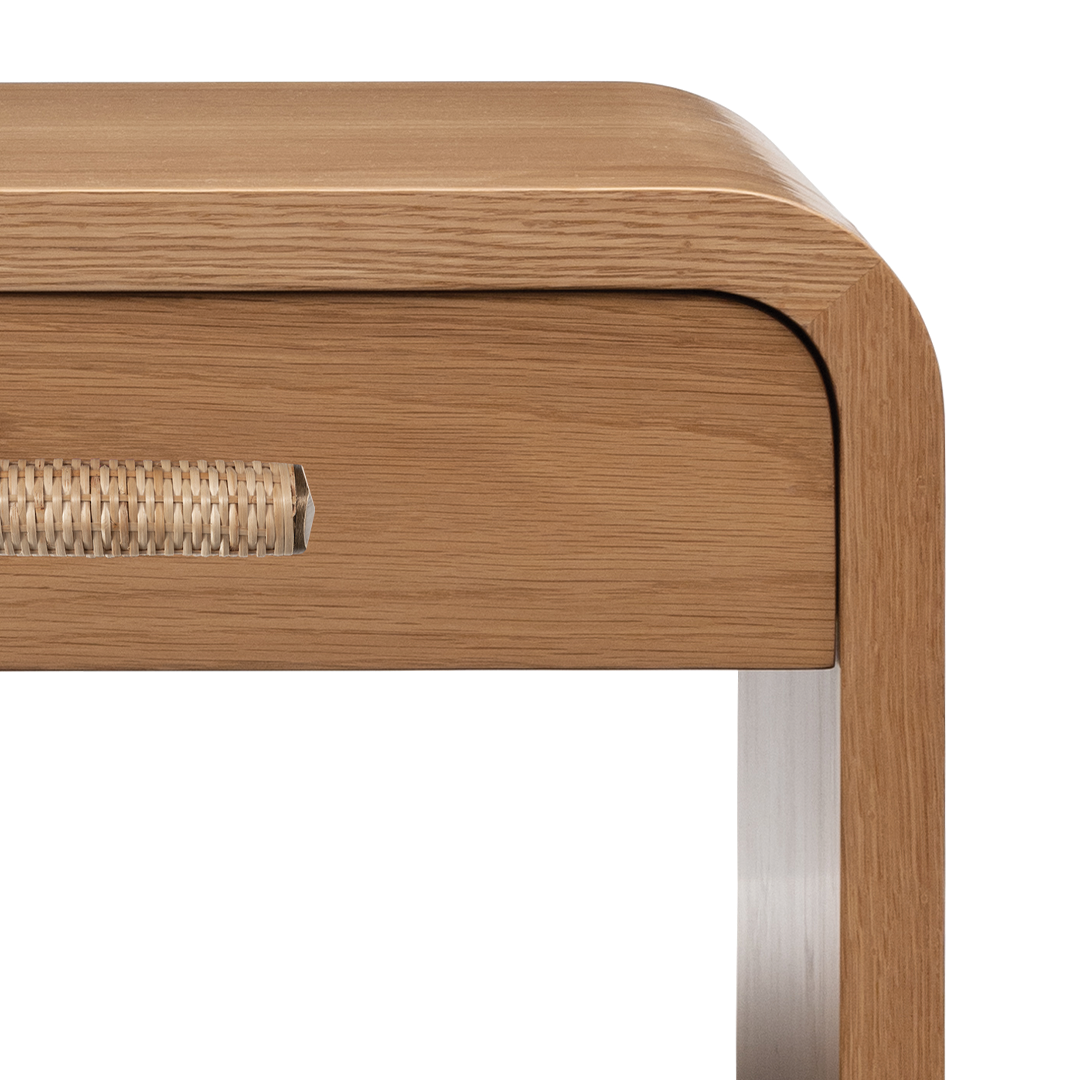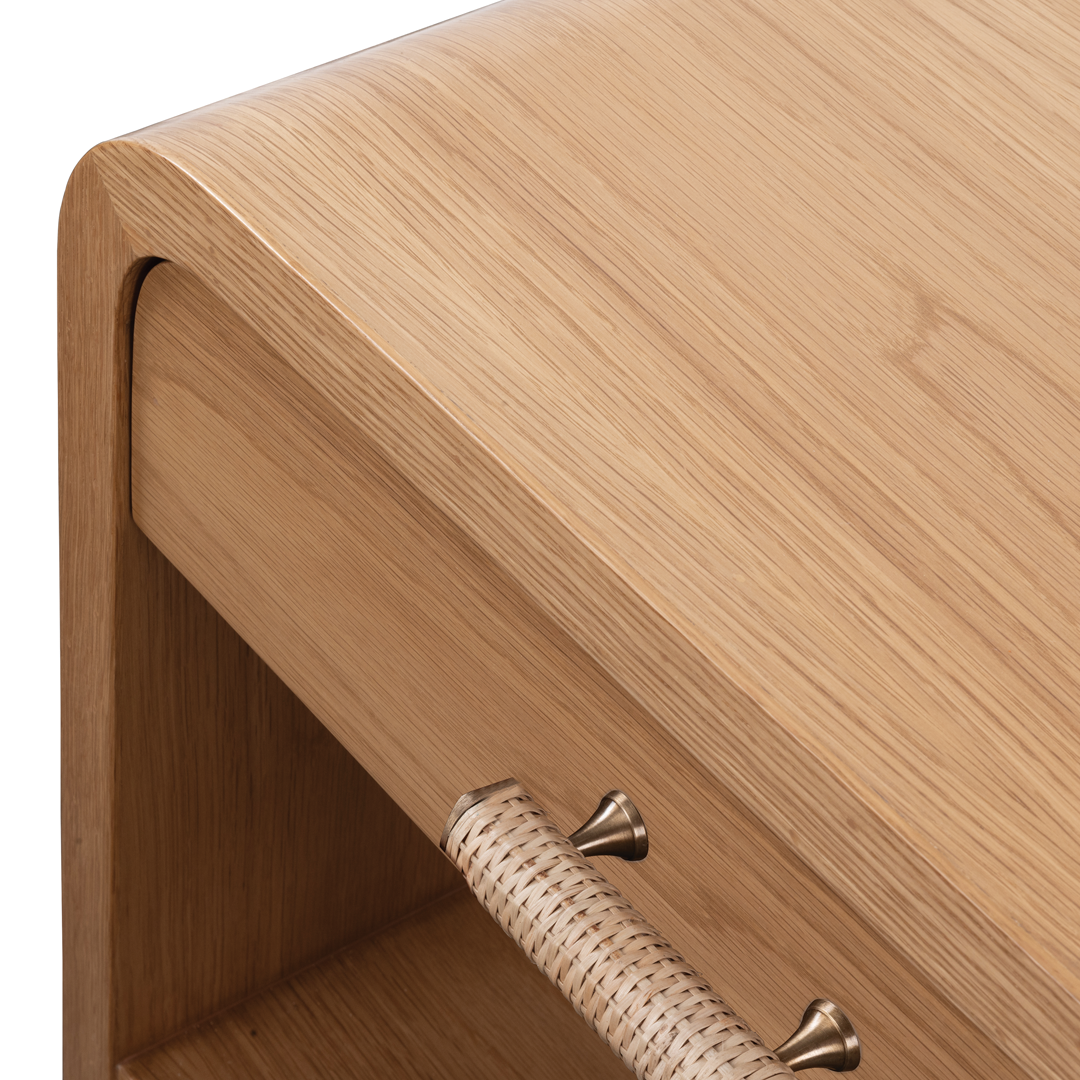 Inspired by a memory of academic curiosity and personal craftsmanship, the Clarendon bedside table is named for the Oxford lab where co-founder Ritz once conducted the famed “double slit” experiment. The result is a piece that feels deeply considered—combining elegant lines, a soft contrast of materials, and a distinctive rattan-handled drawer that brings warmth to its modern structure.