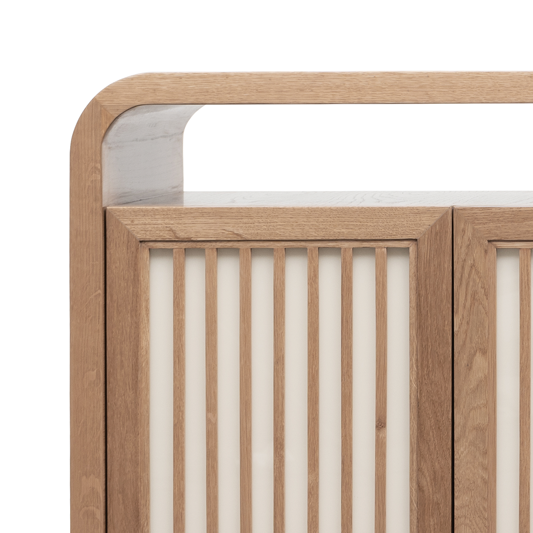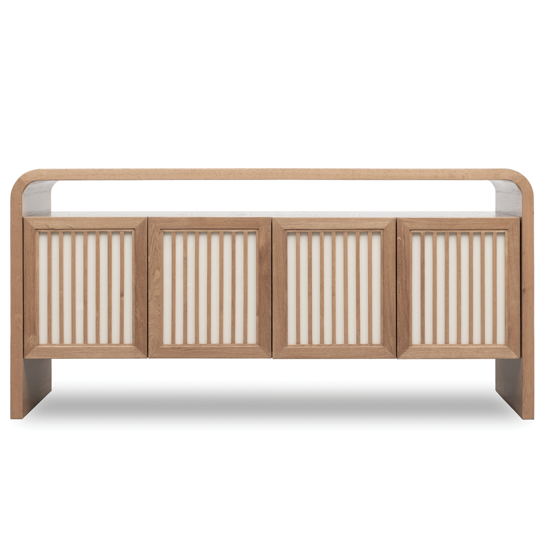 Inspired by the beauty of ordered thought, the Clarendon Sideboard brings precision and warmth into communal spaces. Its silhouette is clean and purposeful, softened by rattan-textured handles and fine craftsmanship. As much a conversation piece as it is a storage solution, it completes the collection with coherence and refinement.