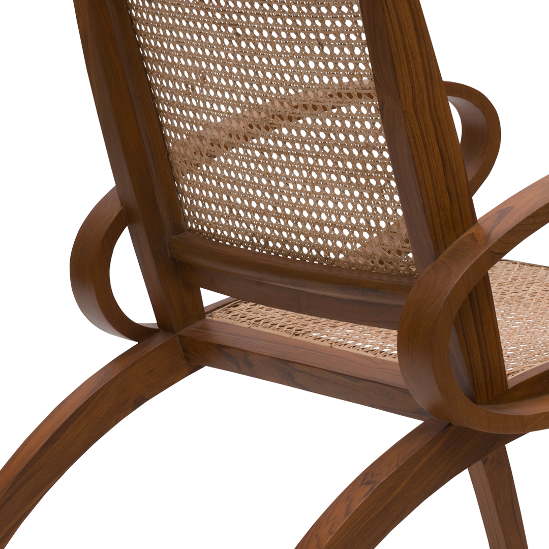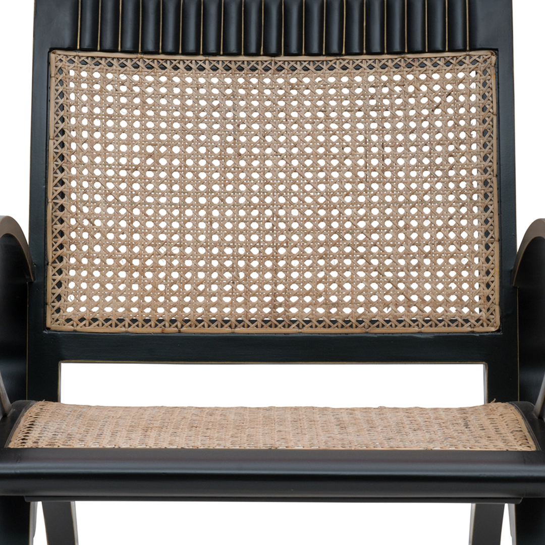 Its hand-caned back and bold silhouette nod to vintage glamour, while its clean lines and graphic frame lend a distinctly contemporary edge. Whether in teak or deep black, the Colombo doesn’t sit quietly—it brings personality to the room.