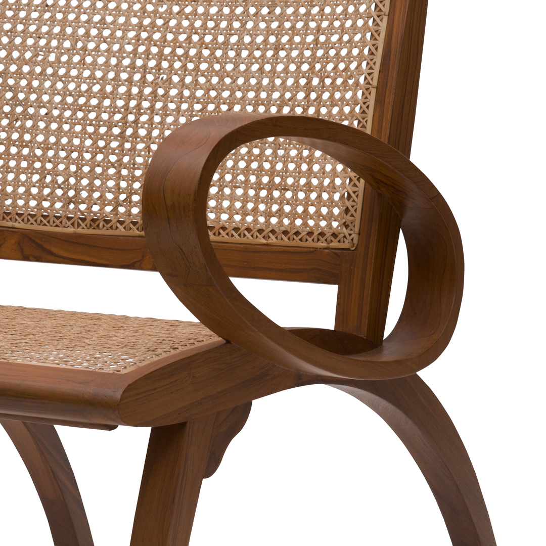 Inspired by the expressive geometry of Art Deco, the Colombo Armchair reinterprets a classic through a spirited, modern lens. Hand-caned and boldly sculpted, it balances whimsy with refinement—an eclectic accent with enduring character.