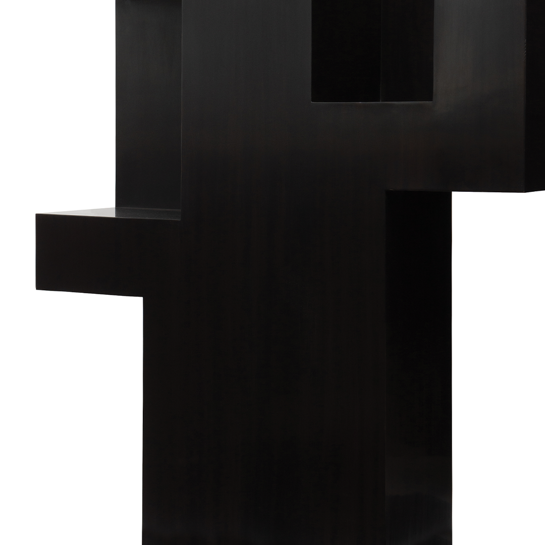 Inspired by the bold urban geometry of B.V. Doshi’s LIC housing in Ahmedabad, this shelf transforms mid-century Indian architecture into a rhythm of planes and voids. Both sculptural and utilitarian, the Doshi Shelf invites playful curation within a refined modernist frame.