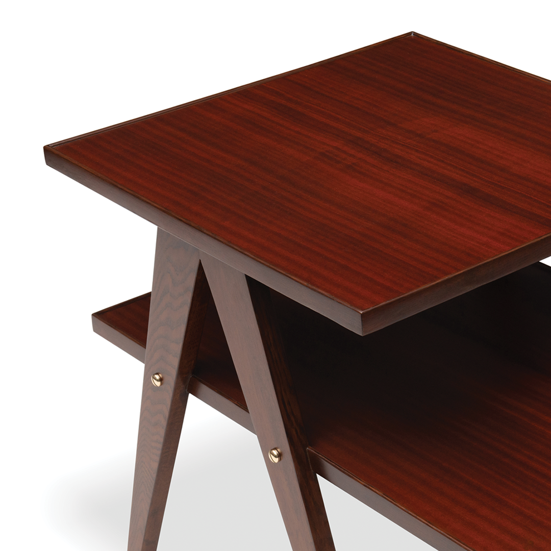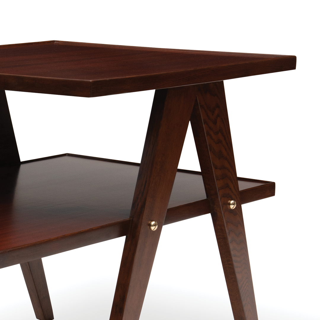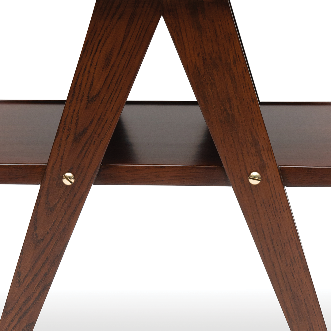 Mid-century influence meets modern ease in the Haines Side Table. Its slender frame, brass-accented edges, and long lower shelf deliver utility with nuance. Whether beside a reading chair or sofa, it holds your morning coffee or latest notebook—and does so with polished restraint and unmistakable grace.