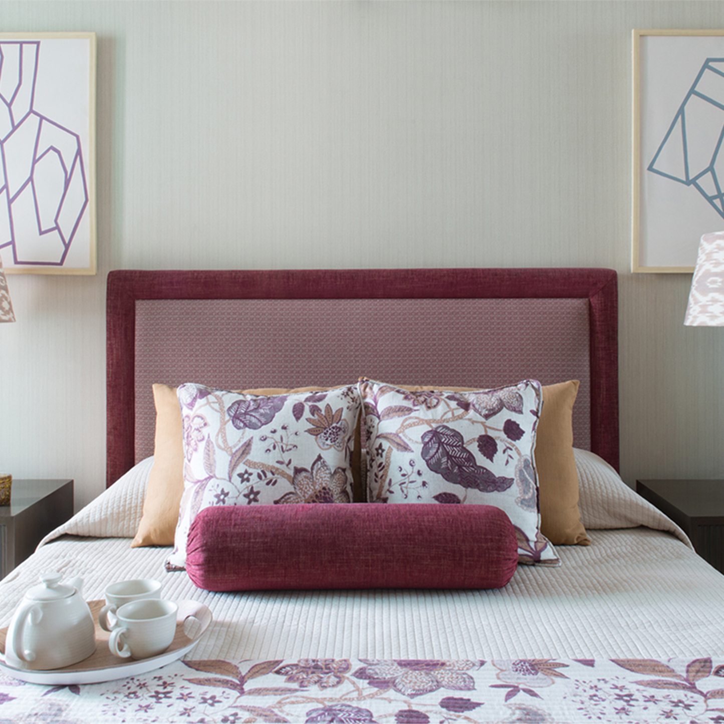 Channeling breezy coastal elegance, the Hamptons Bed brings a relaxed yet refined presence to the bedroom. With the option to choose between just the headboard or a full upholstered base, it adapts to a spectrum of room sizes and styles. Richly textured fabrics elevate its charm—select Chittoor, a classic Ikat weave for bold statement-making style, or opt for soft cotton-linen for an inviting, cozy feel. Finished in dark walnut, the Hamptons pairs beautifully with the Mandarin side tables or chest of drawers, forming a harmonious and inviting bedroom tableau.