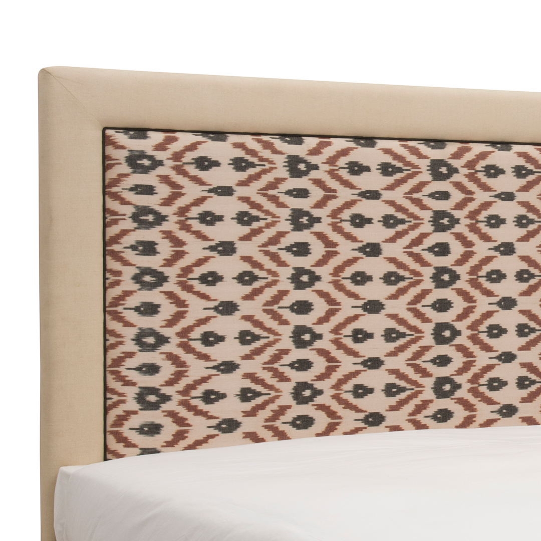 Buy as headboard-only or as a complete bed; upholster in classic cotton-linen or the bold Chittoor Ikat.