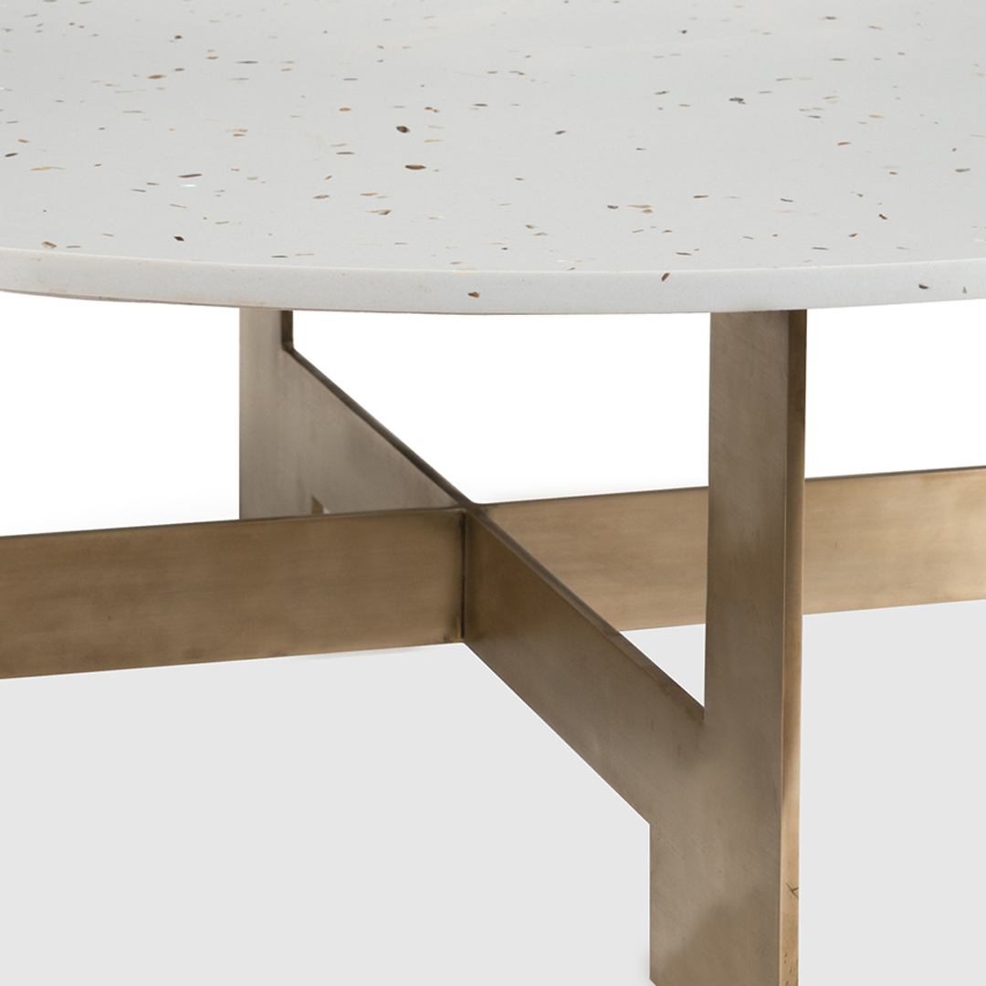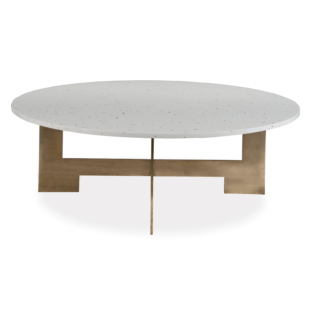 The Hollywood collection includes a coffee table and side board with brass details. The base of the Hollywood coffee table is made of solid brass and the top is made from Art Deco inspired "Chips".