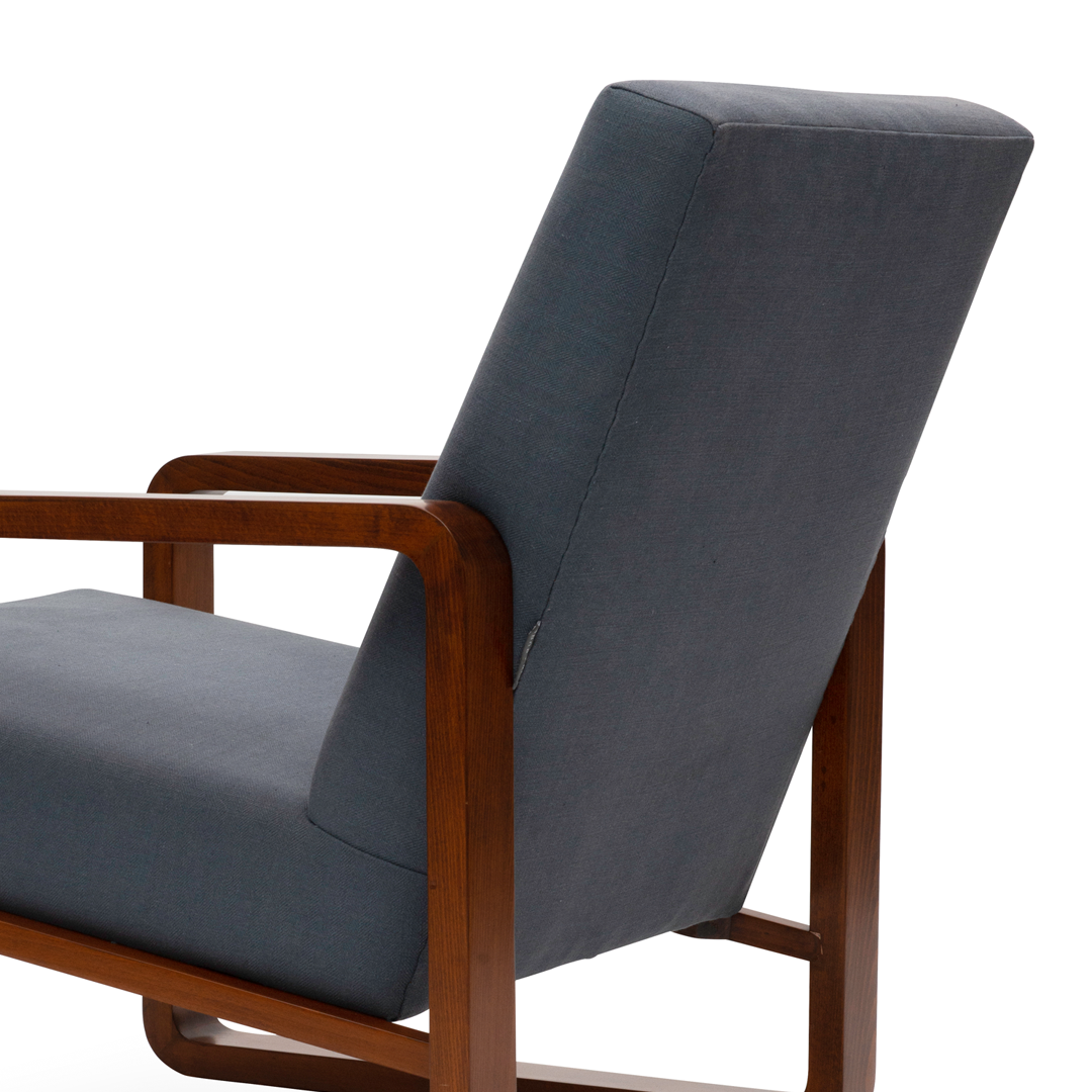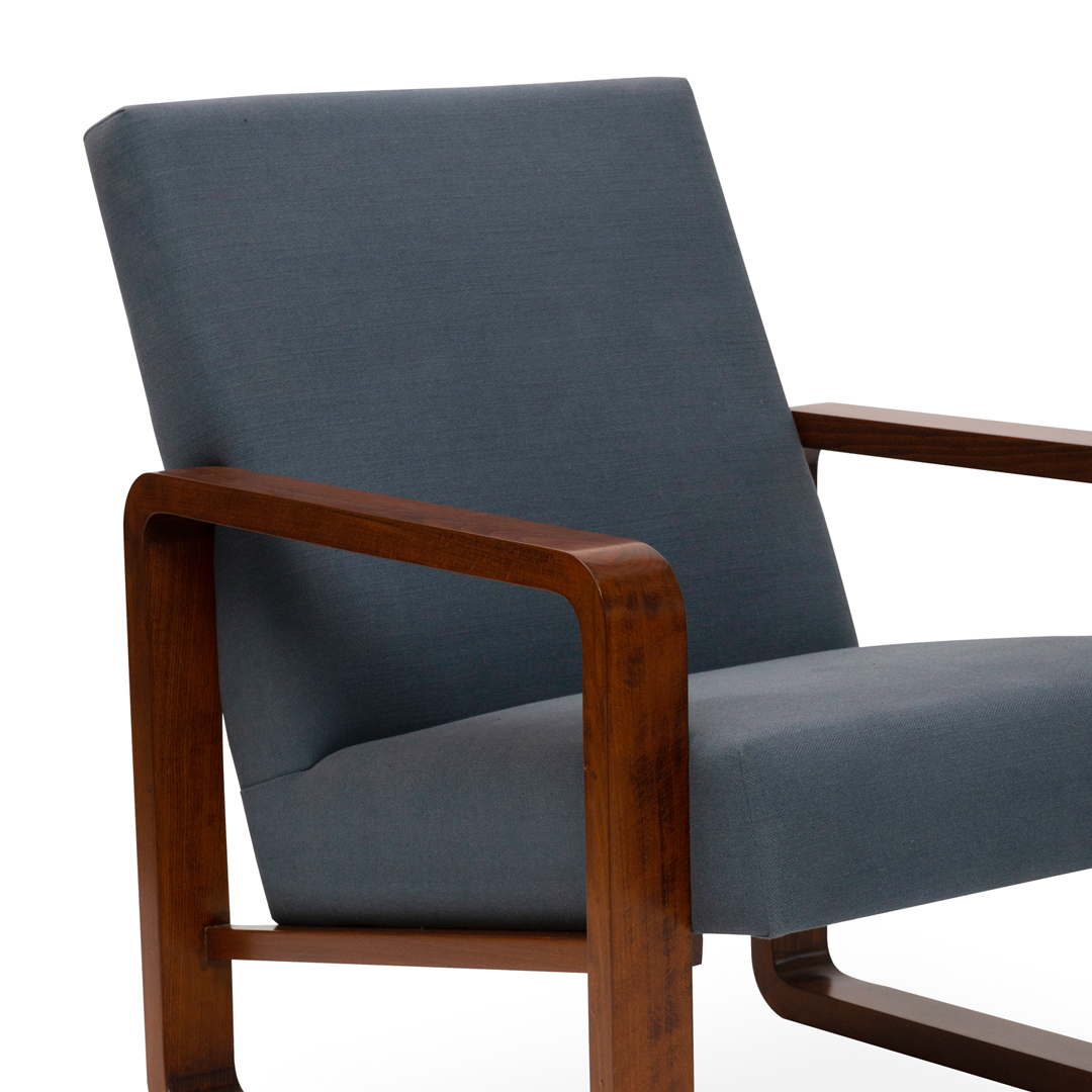 Our very comfortable and chic Hugo is a contemporary update of an Art Deco classic.The Hugo armchair is photographed in a warm walnut polish and looks great in plain fabrics.