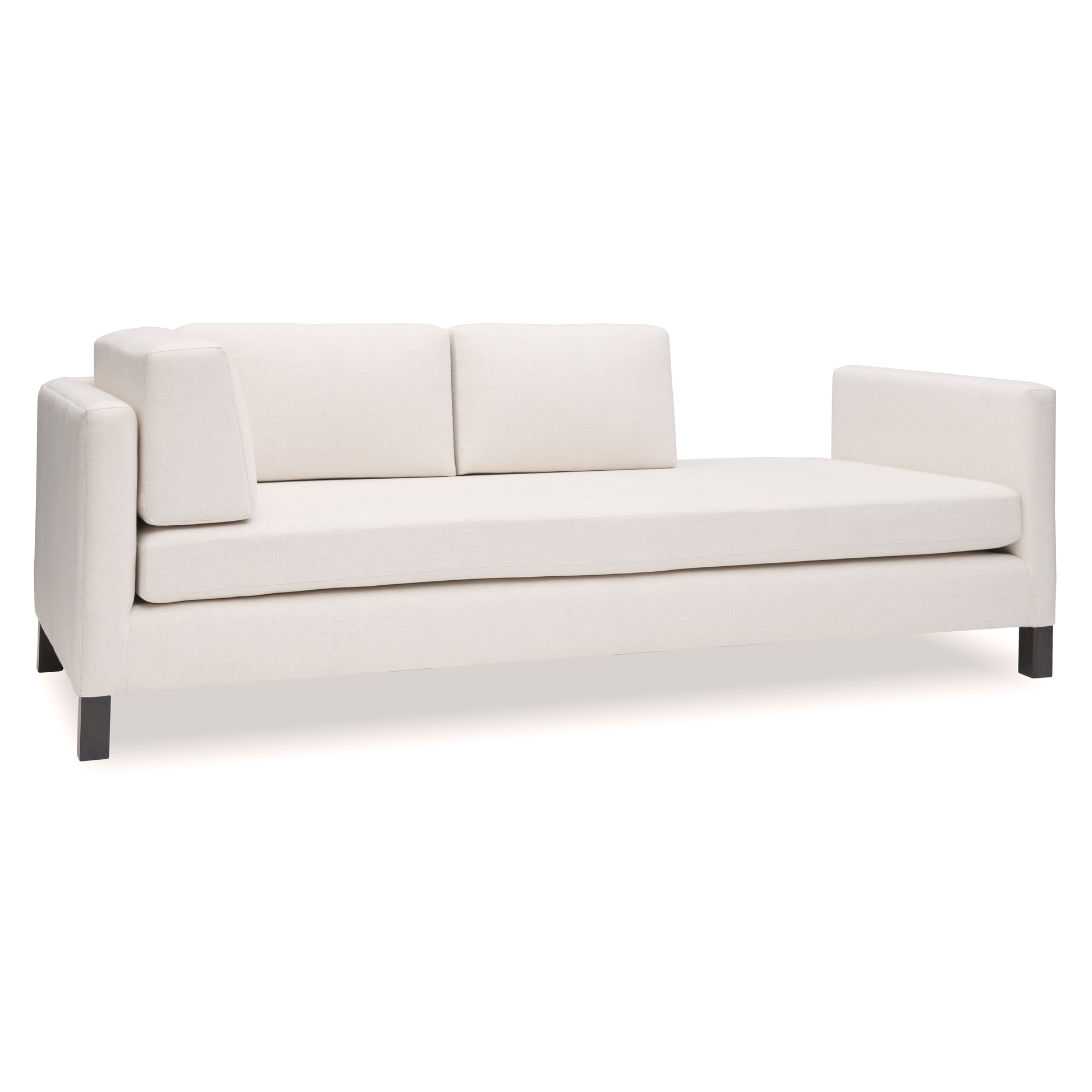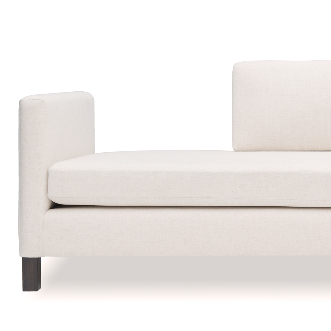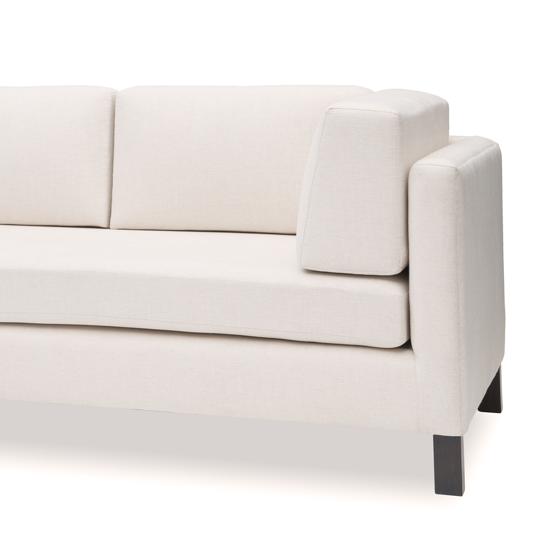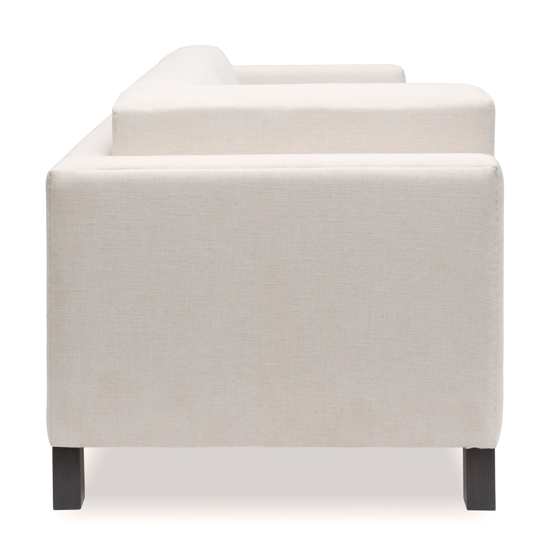 Inspired by architectural minimalism and asymmetry, the Iris Sofa presents clean lines and a sleek form. Its shifting back profile and contrasting legs deliver a modern silhouette with curated subtlety.