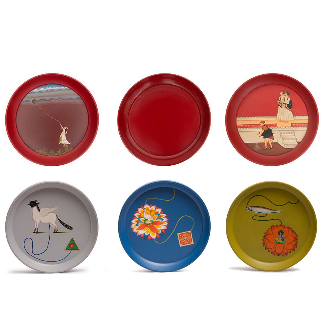 The eclectic Jaipur tables are a fun adaptation of traditional lacquer trays.