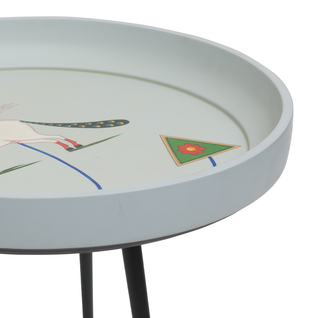 Inspired by the rich visual legacy of Jaipur miniatures, the Jaipur Accent Table stands out as both furniture and art. Crafted by Ayush Kasliwal and painted by Jaipur artists, its detachable design offers portability wrapped in narrative elegance.