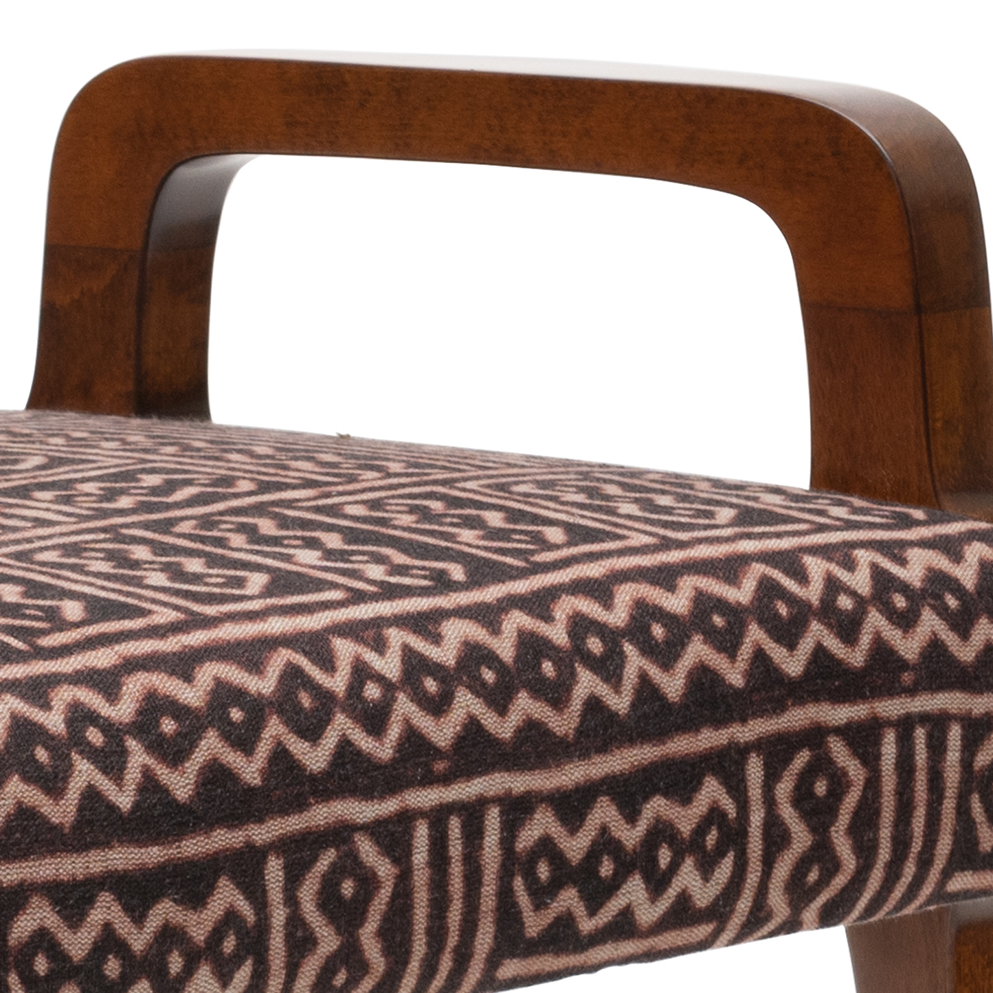 The Kutch Chair Collection beautifully showcases various fabric options, from the traditional handwoven shawls crafted by artisan families of Gujarat's Kutch region to contemporary prints. Its thoughtfully designed silhouette, featuring clean lines and a warm wooden frame, provides the perfect canvas for any upholstery. Complete with a matching footstool this versatile piece is a sophisticated addition to any interior while offering the opportunity to support traditional craftsmanship.
