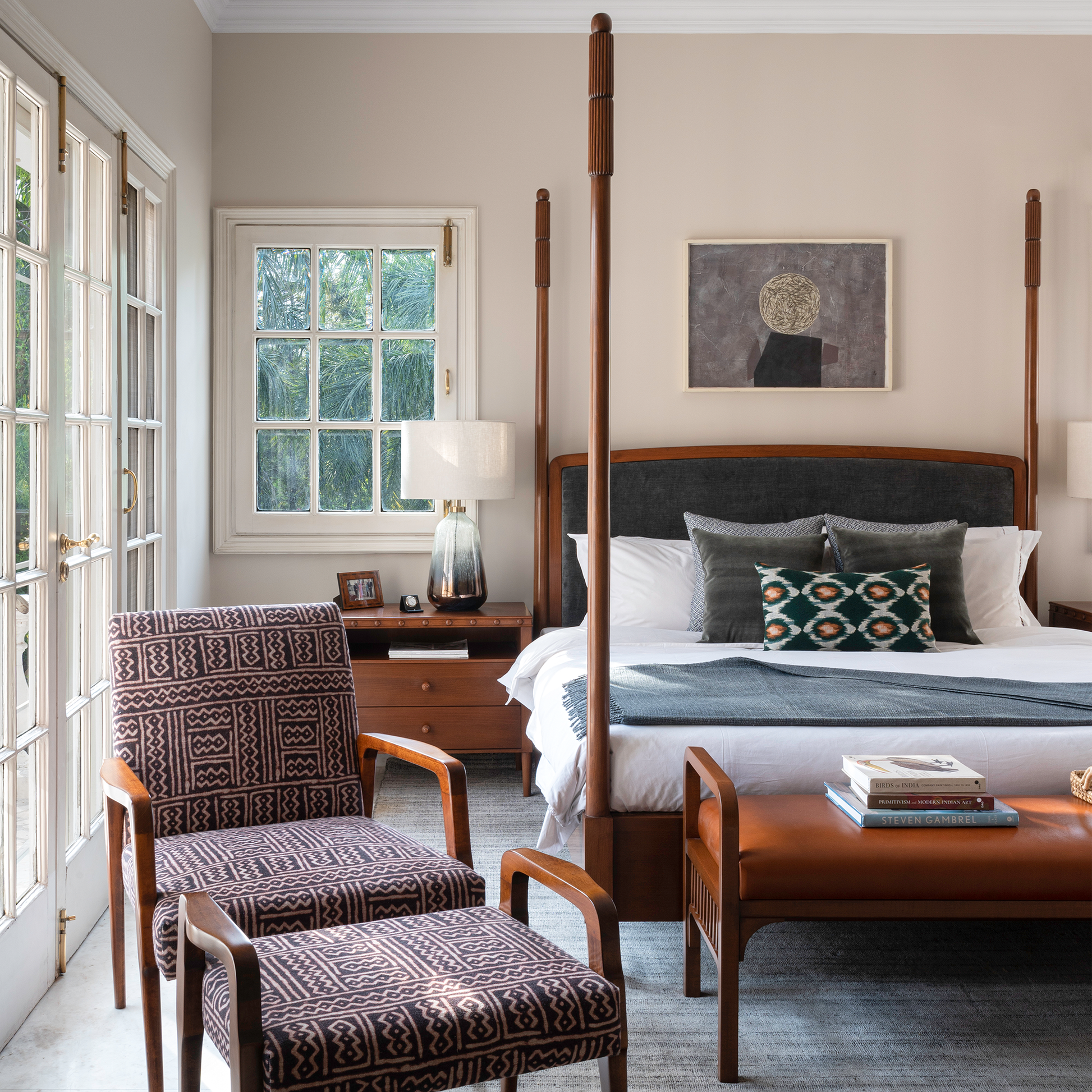 Escape into the serene charm of the Lamu Nightsky bedroom look — where rich textures and thoughtful design come together. The Kutch armchair and matching stool add a touch of artisanal warmth, perfectly complementing the elegant Lamu four-poster bed and side tables. Finished with the sculptural Doppler bench, this space is a harmonious blend of tradition, comfort, and contemporary elegance.