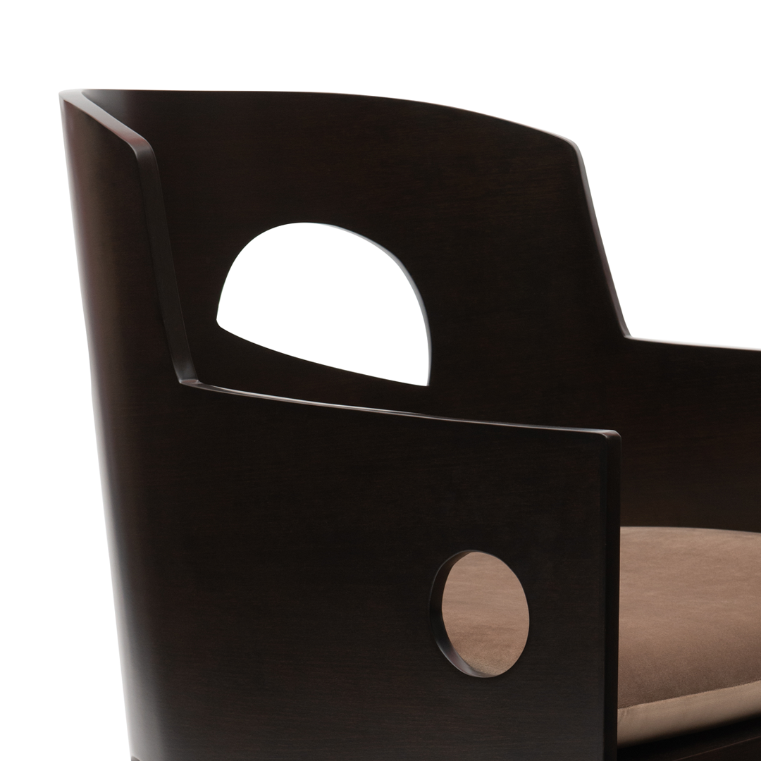 The contours of the Louis are reminiscent of Louis Kahn's architectural wonders. Random cut outs on the chair reflect Louis's geometric and often circular windows. The Louis is the perfect artistic statement to any drawing room.