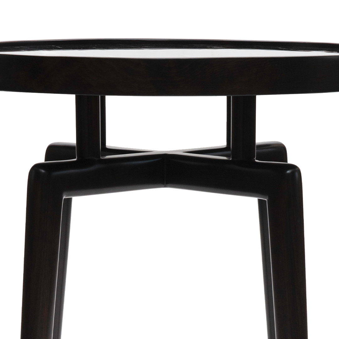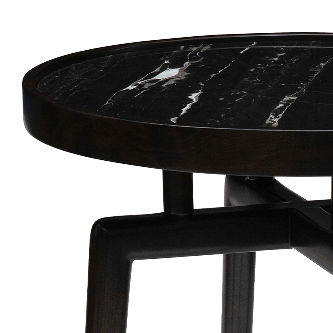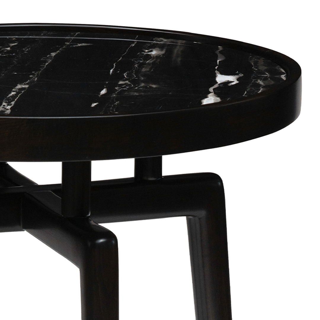 Inspired by celestial formality, the Lunar Accent Table showcases a dark marble surface with distinctly slender, black-finished supports. Its sculptural simplicity invites focus while radiating quiet sophistication.