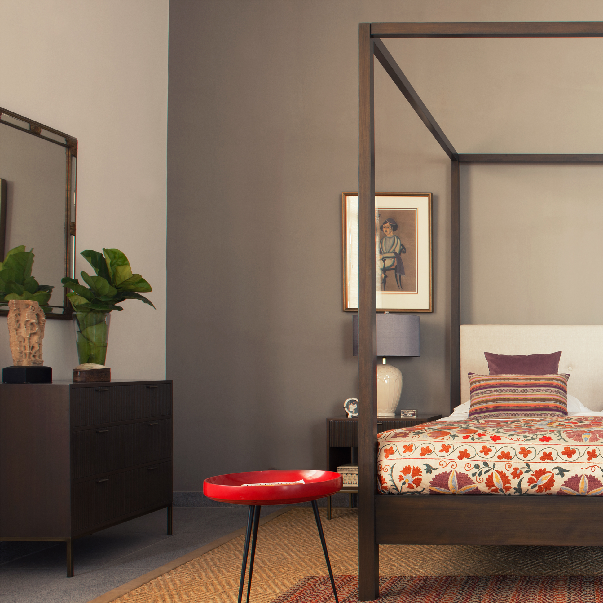 Inspired by Eastern grandeur retold through contemporary minimalism, the Mandarin Four-Poster Bed melds sculptural frame with elegant restraint. Standing 226 cm tall and stretching nearly 2 m wide, it dominates the bedroom with serene strength—available in soft linings like Herringbone Linen and rich fabric pairings like Bamboo Rust.