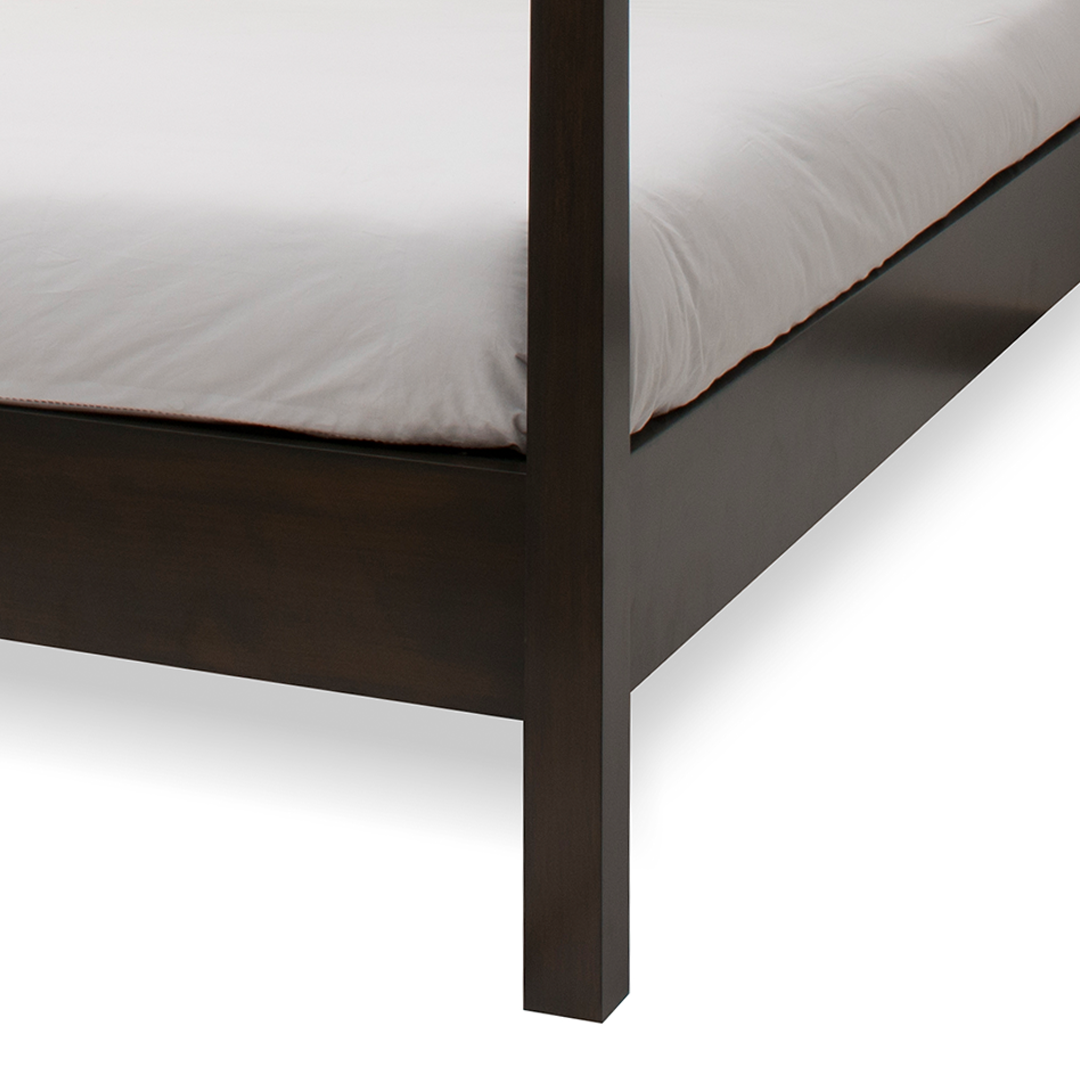 A modern reinterpretation of classic form, the Four-Poster Bed weaves vertical restraint and clean plain geometry into a serene structure. Each leg rises with architectural grace, framing the bed in composed symmetry.