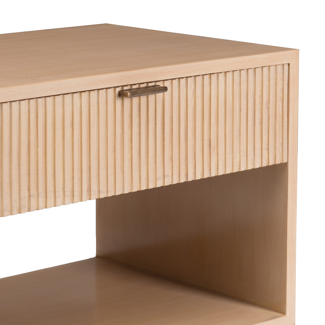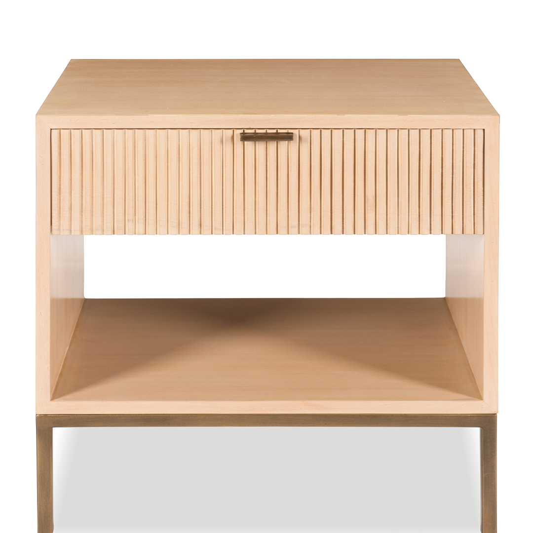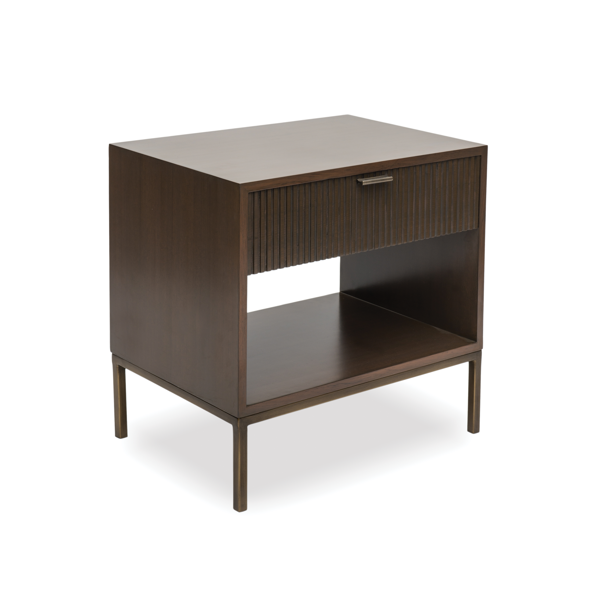 The verticality of the Mandarin Collection is distilled in its elegantly compact bedside table. Its refined proportions, subtle grooves, and balanced form make it both functional and graceful. Positioned alongside the Mandarin bed, it offers quiet symmetry—a bedside presence that resonates with the collection’s refined calm.