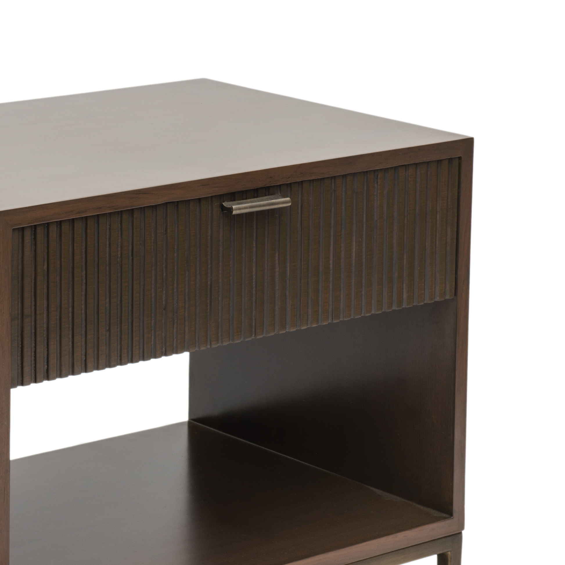 Inspired by considered pairing and symbiotic elegance, the Mandarin Bedside Table refines nightly ritual through craftsmanship. Offered in Walnut, Graphite, and Glaze, its single drawer and open shelf offer both storage and architectural clarity.