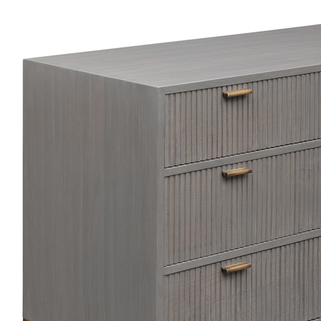 Inspired by modern refinement and spatial harmony, the Mandarin Chest of Drawers is sculpted from sleek vertical grooves and clean edges. Offered in Graphite and Grey Ash, its subtle detailing gives everyday storage a tranquil yet sophisticated character.