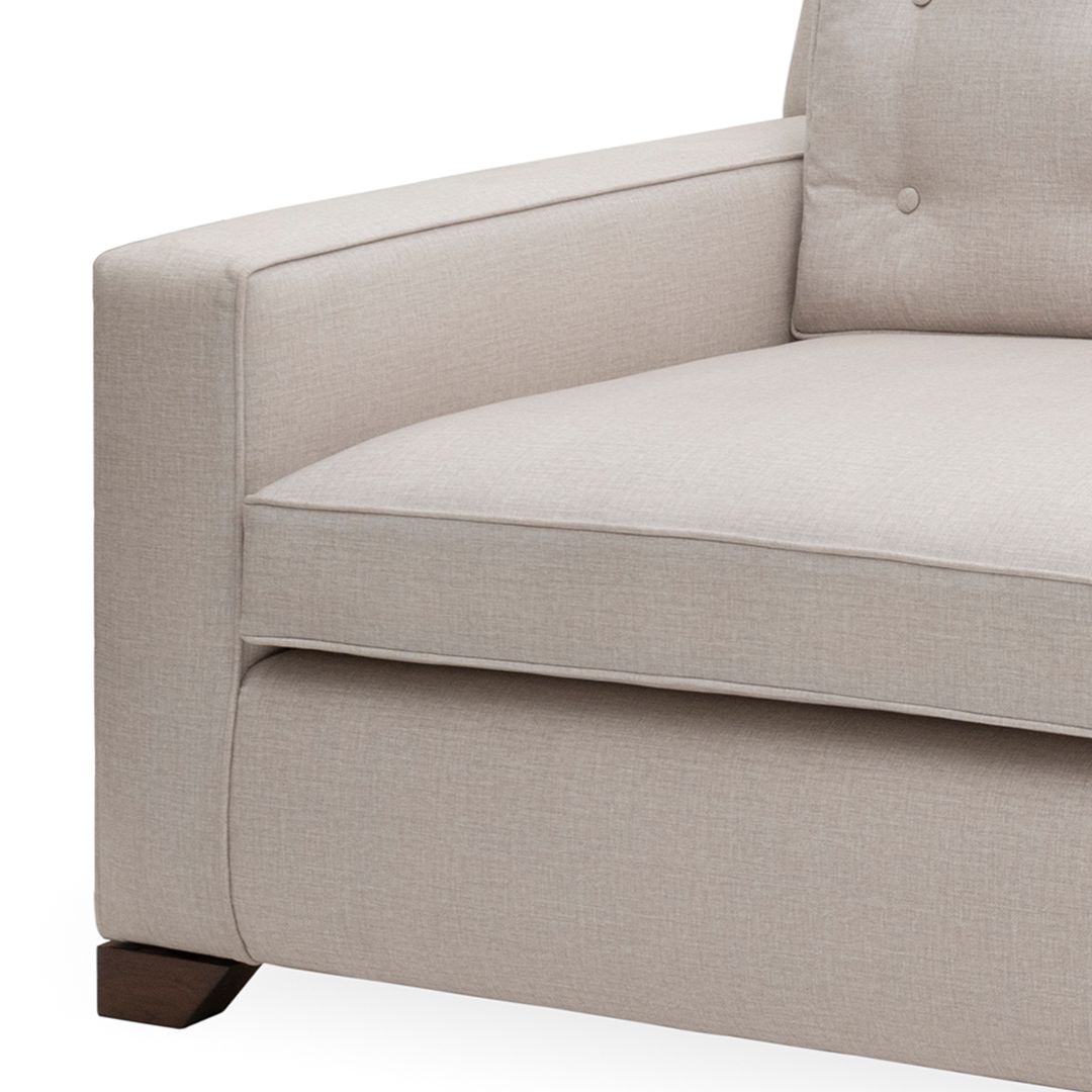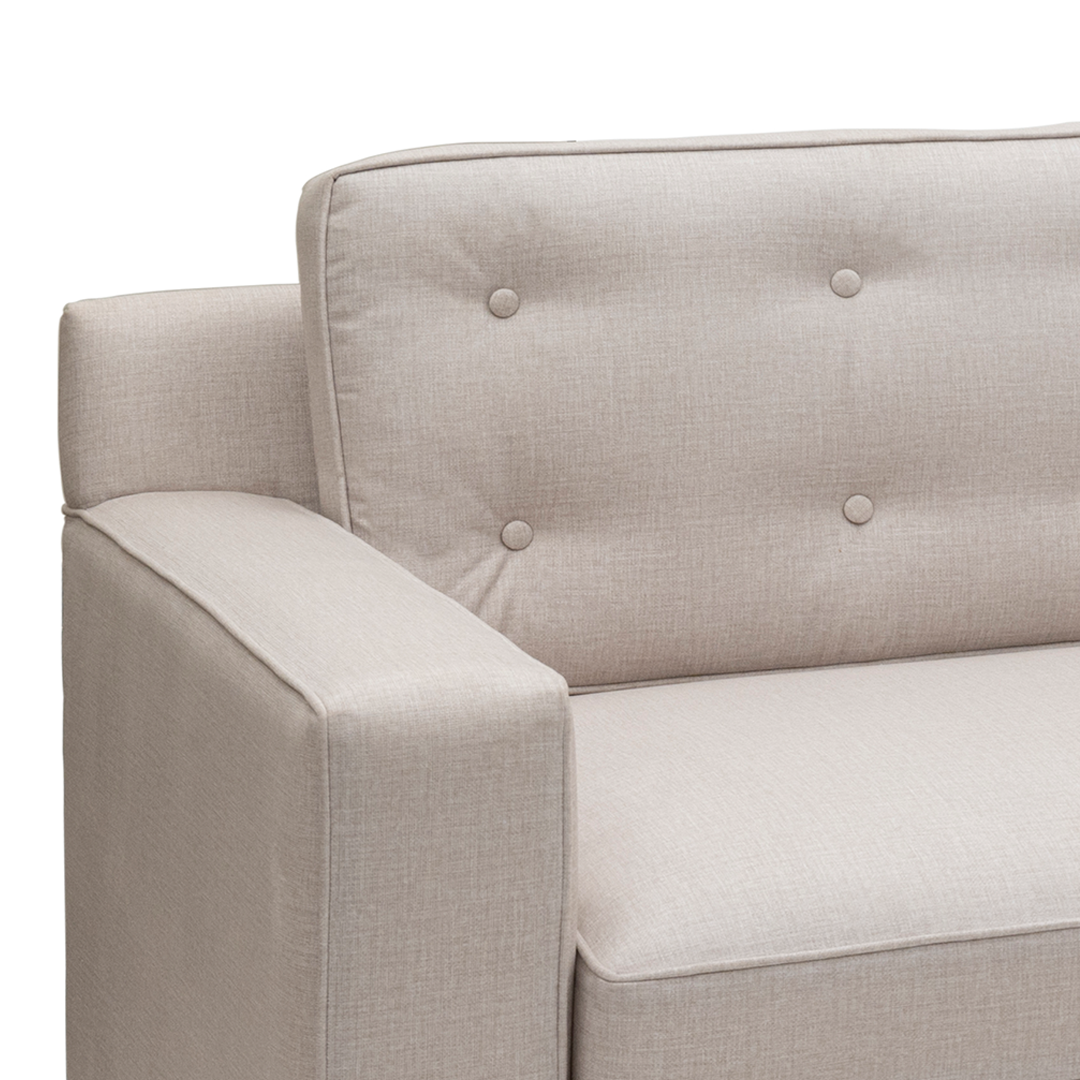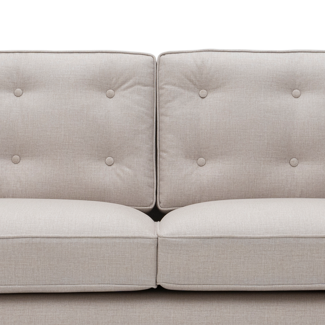 Mary is deceptively simple—until you sink in. With its low-slung arms, deep-button tufting, and wide, welcoming proportions, this sofa is designed for long, unhurried lounging. The neutral palette and clean geometry lend it an effortless sophistication, while its plush cushions deliver the kind of comfort you don’t easily walk away from. Mary is understated indulgence for every day.