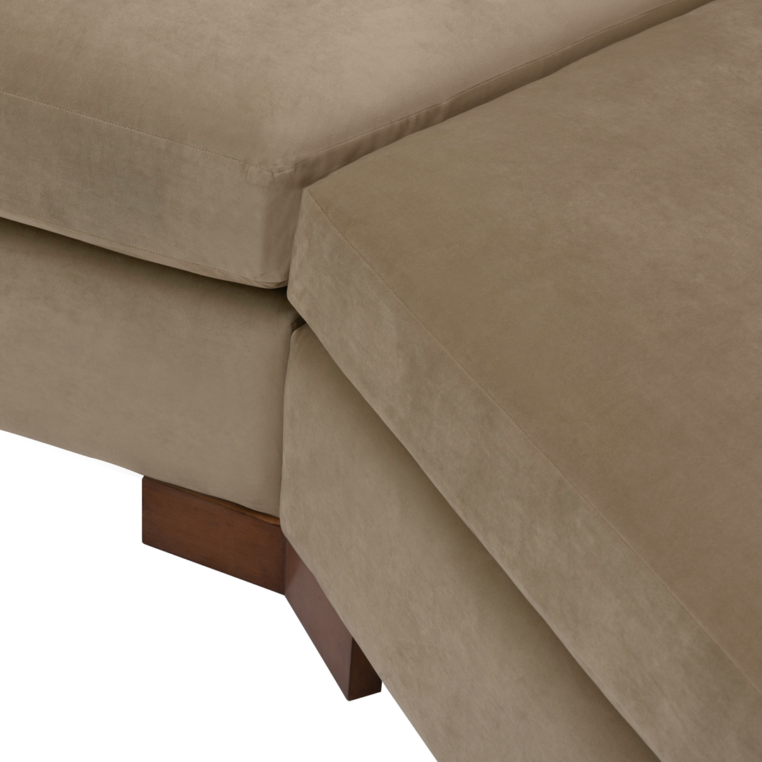This sophisticated sectional sofa combines modern design with timeless comfort. The Milo features clean lines and a minimalist aesthetic. Its neutral upholstery and wooden feet create versatility, making it an elegant centerpiece for both contemporary and classic interior spaces.