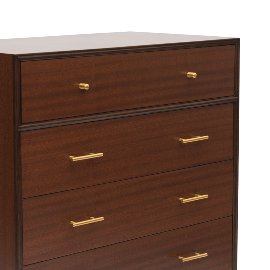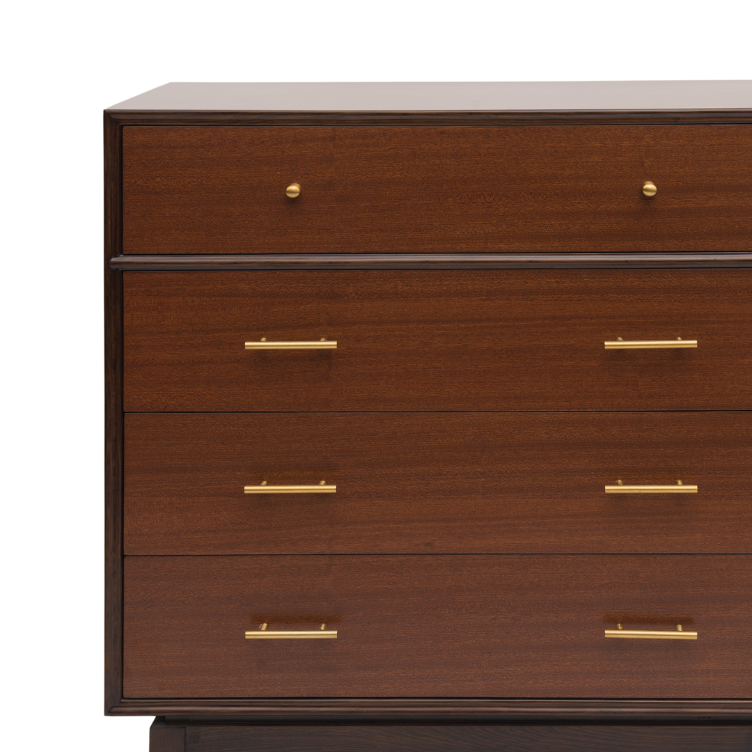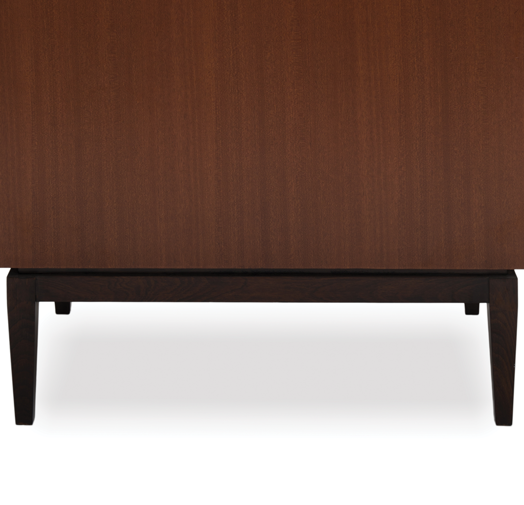 Meticulously crafted with Brass detailing, our Noma collection adds mid-century modern glamour to your home. The Noma collection rests on its sleek tailored legs and is photographed in two rich polish finishes, Weathered Black and Dark Sapeli.