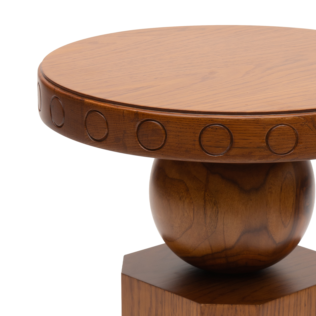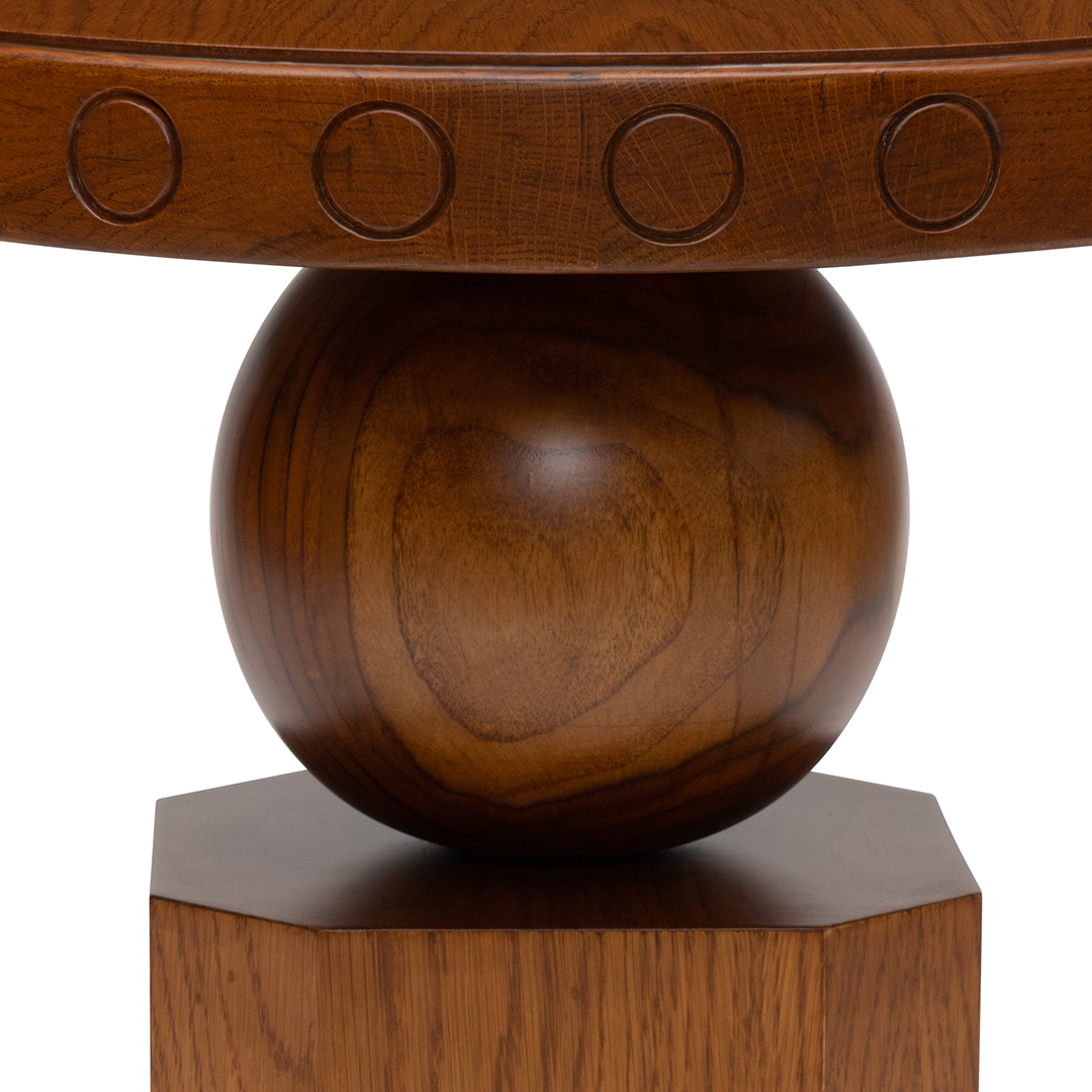 Compact yet compelling, the Orb Accent Table channels the circular aesthetics of architectural icons. Its top and centre sphere echo the graceful geometry of Louis Kahn’s windows, while the bronzed oak polish reveals organic texture. A cocktail ally, a display surface, or a sculptural pause—Orb marries clever form to quiet luxury.