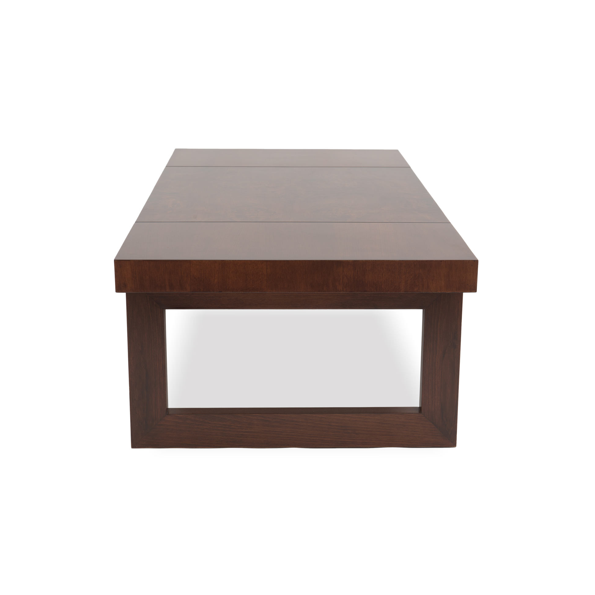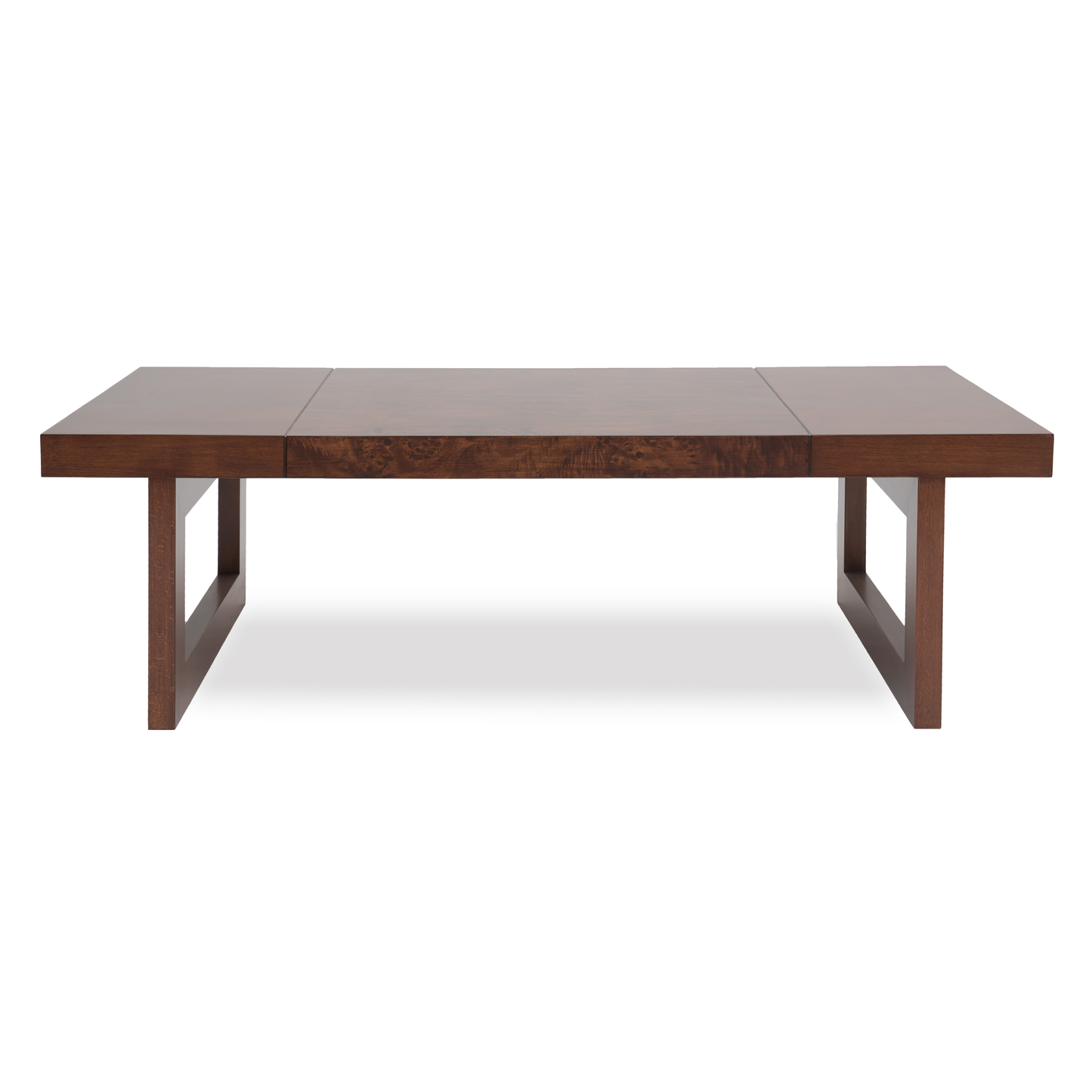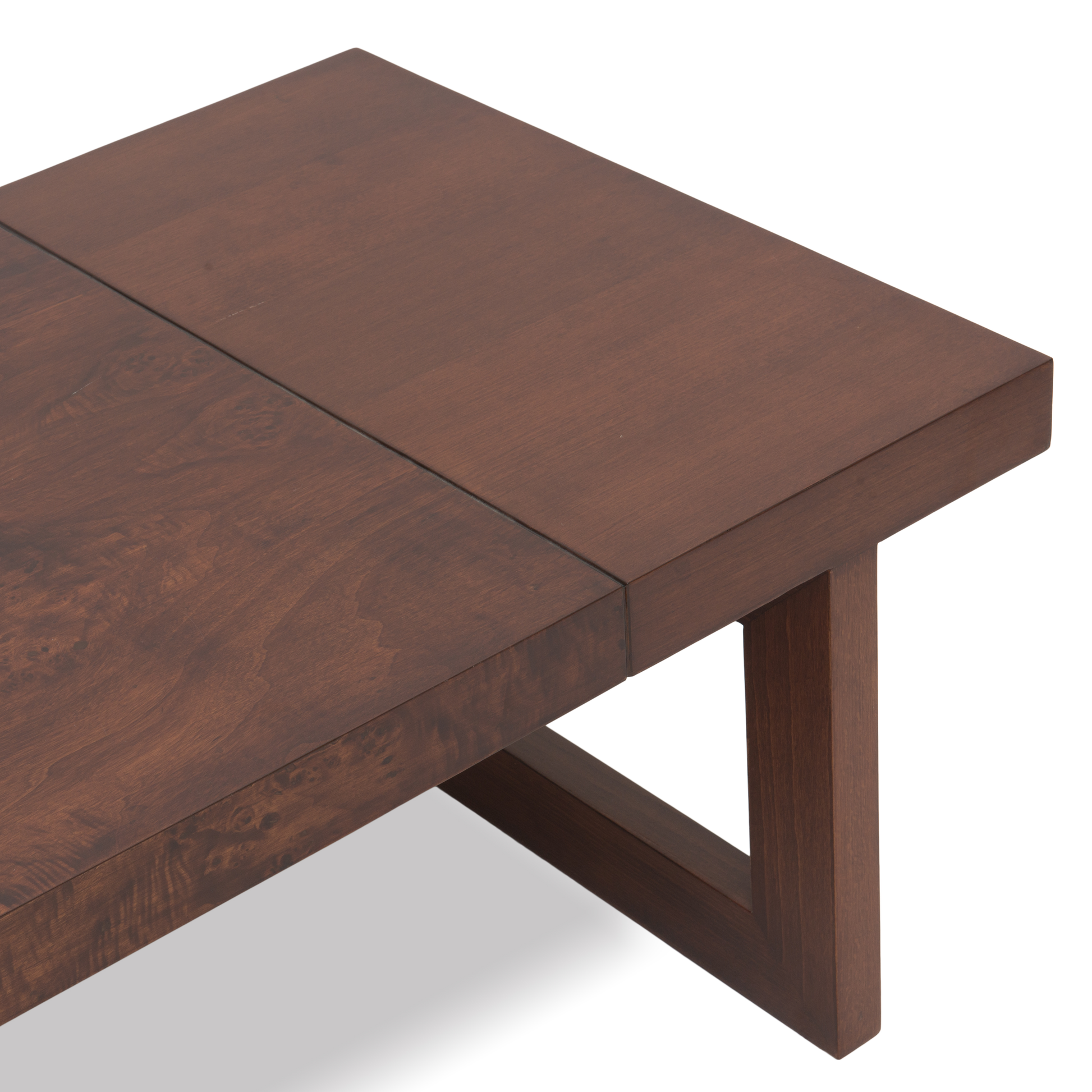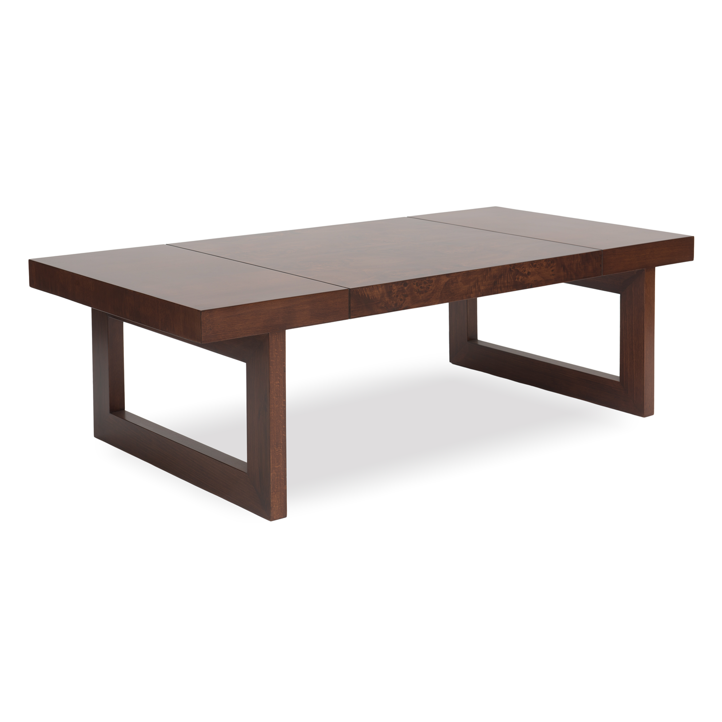 Inspired by the refined beauty of Brazilian mid-century design, the Rio coffee table blends sculptural modernity with classic warmth. Rich Mappa Burl veneer and bold geometric lines create a striking centerpiece with timeless appeal.