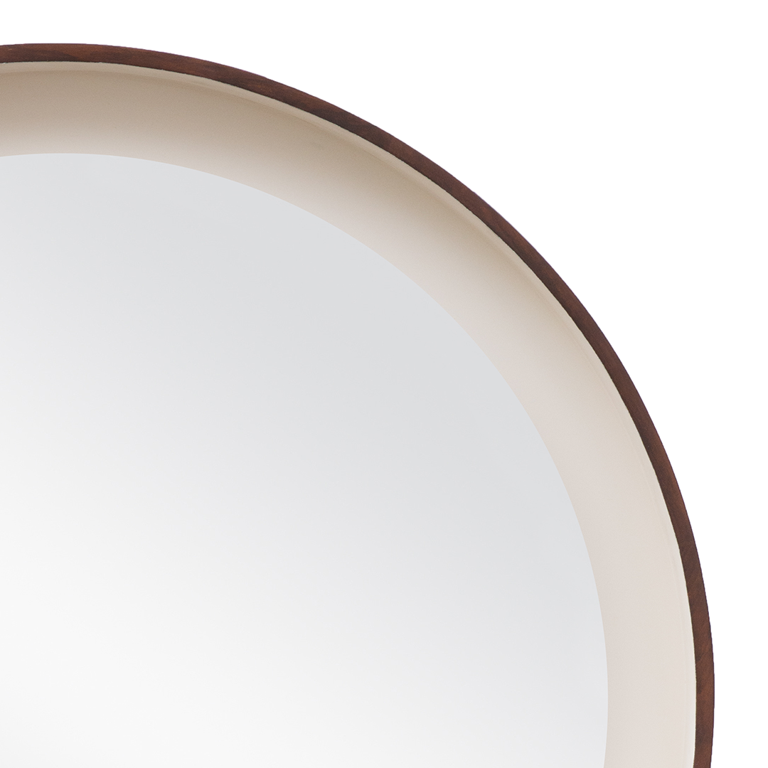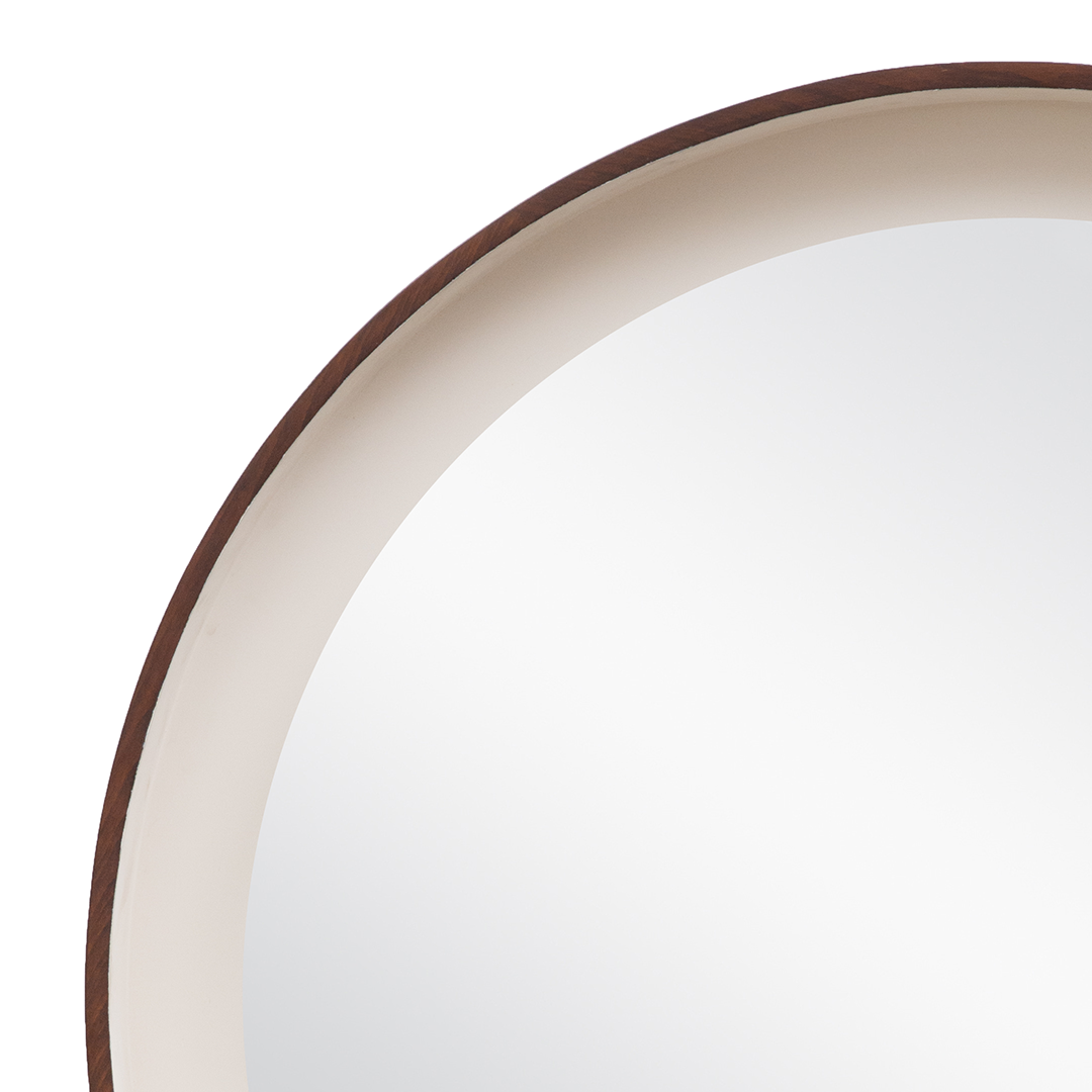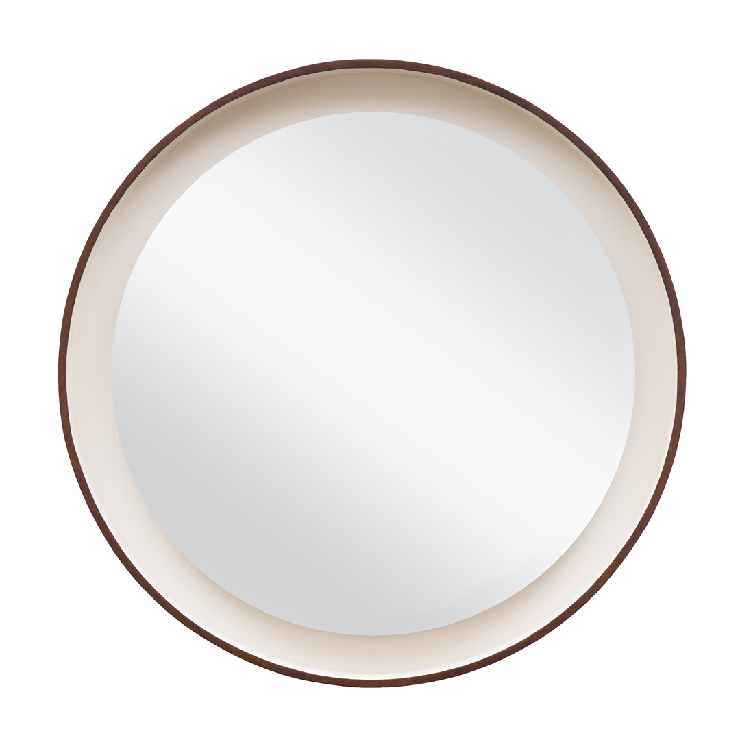 Inspired by serene geometry and whispered craftsmanship, the Rosetta Mirror introduces warmth into interiors with its hand-carved wooden frame—softly finished in off-white and accented with a walnut edge. The round form offers quiet balance, inviting comfort while enhancing ambient light.