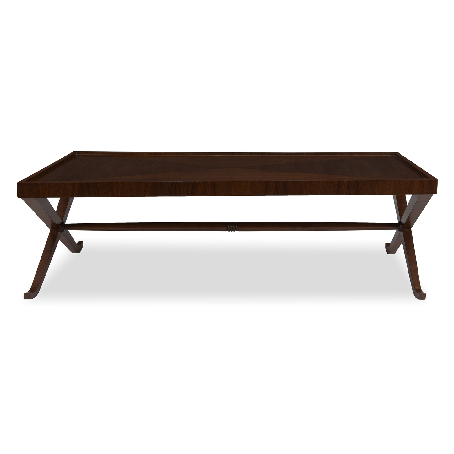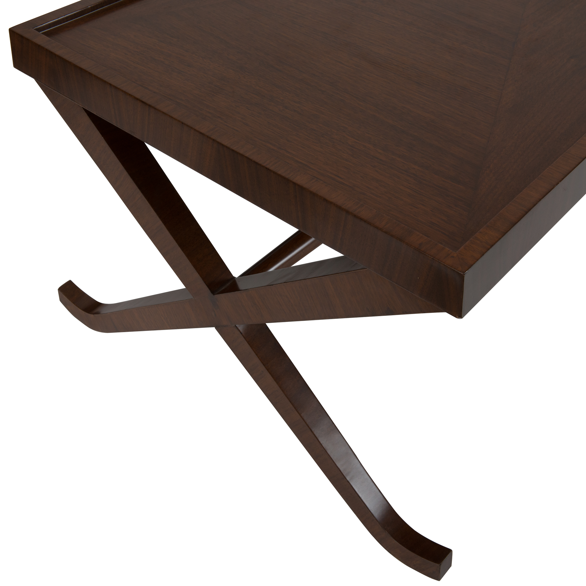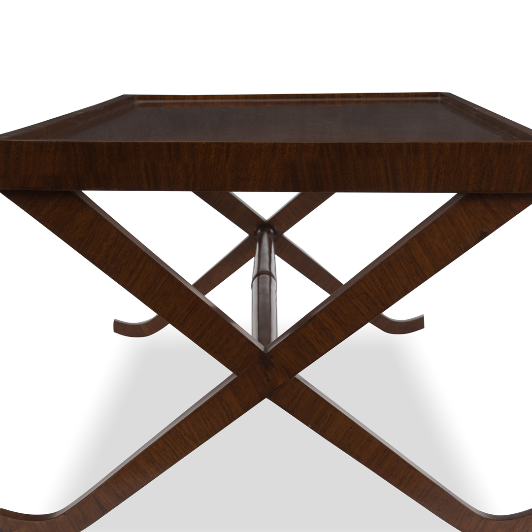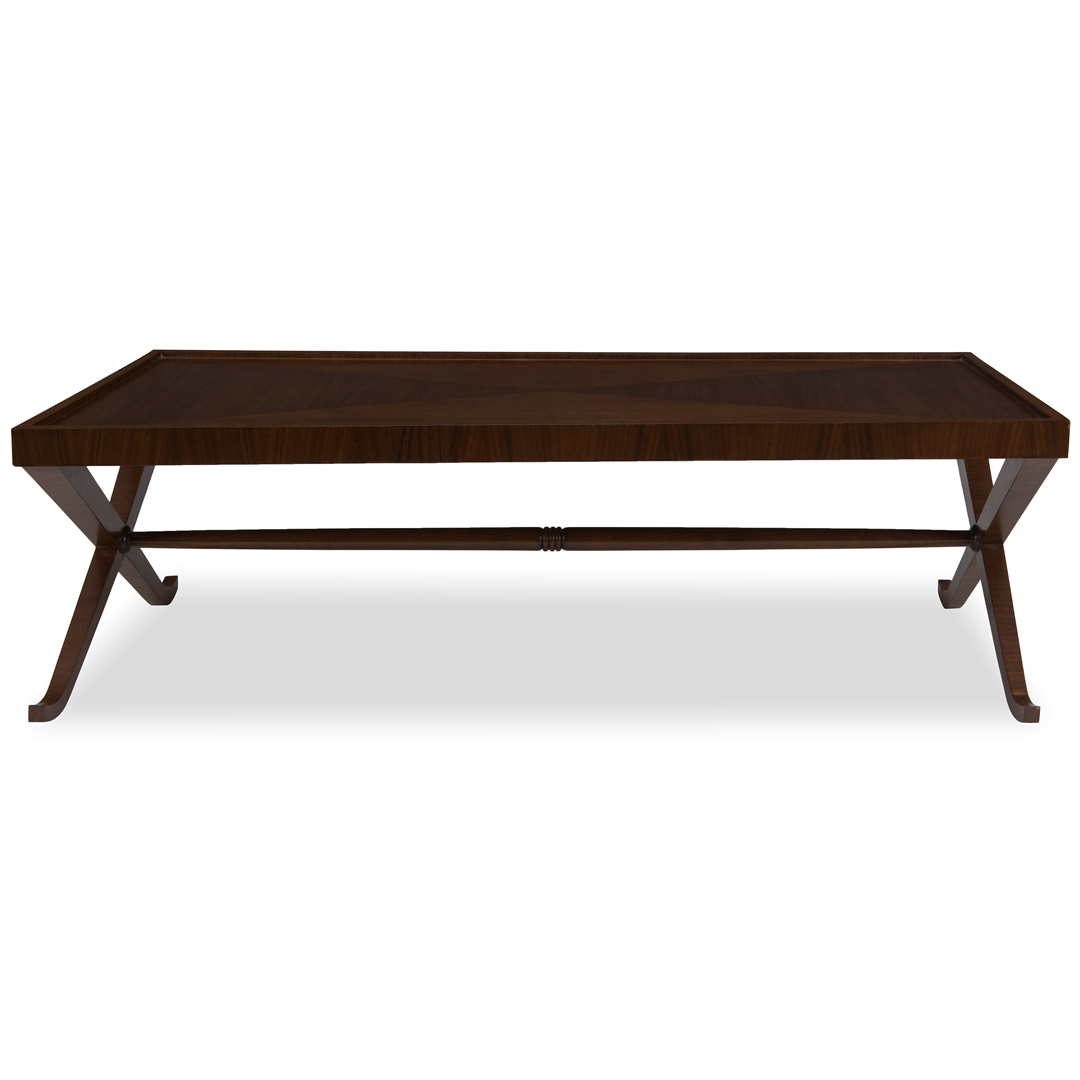 Handsome and stylish, the Savoy coffee table adapts Empire style for modern living with its distinctive X-frame base and graceful curves.