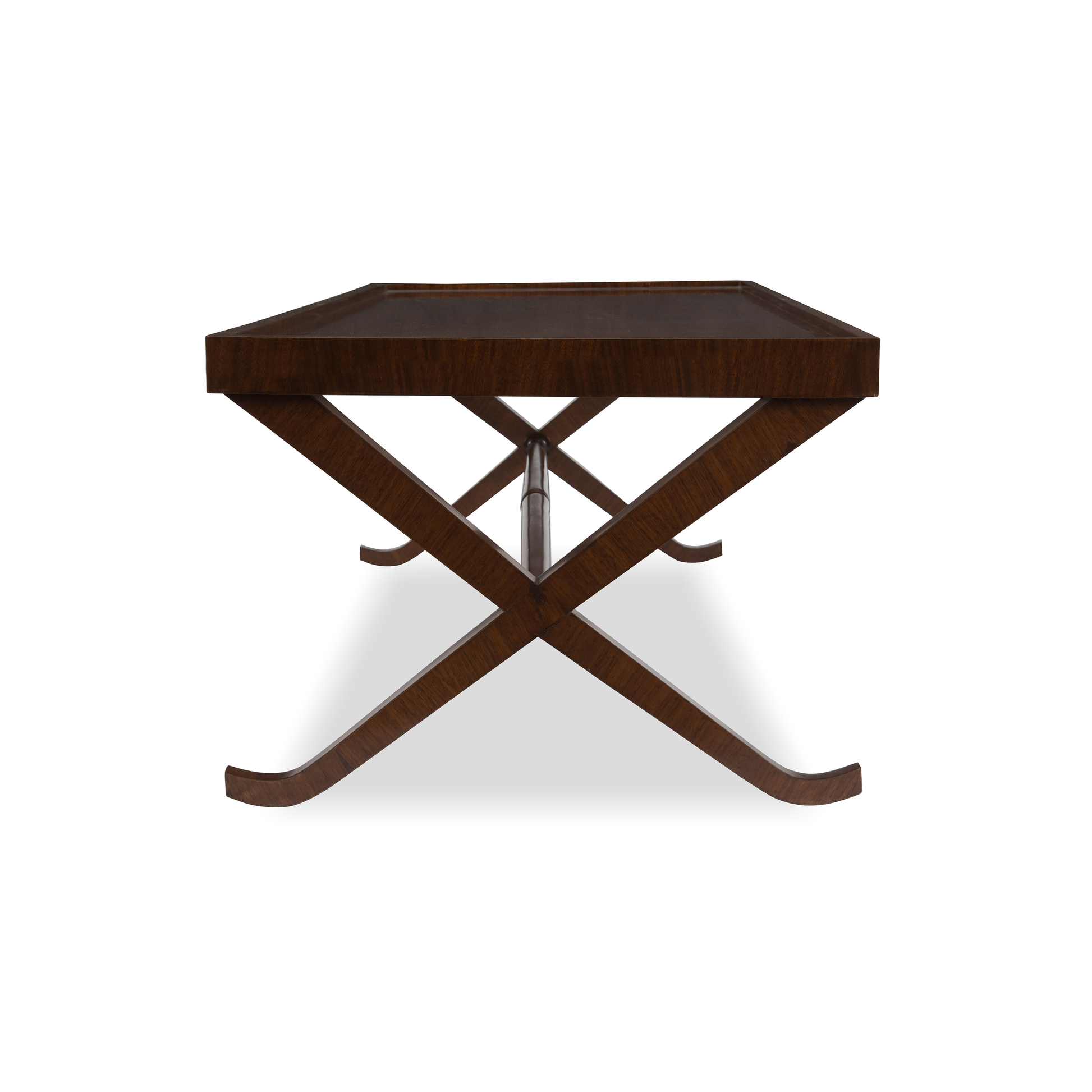Inspired by the enduring elegance of Empire-era furniture, the Savoy Coffee Table reinterprets its grandeur for modern living. A sweeping X-frame base and beveled, walnut-veneered top supply opulence and structural grace in equal measure.