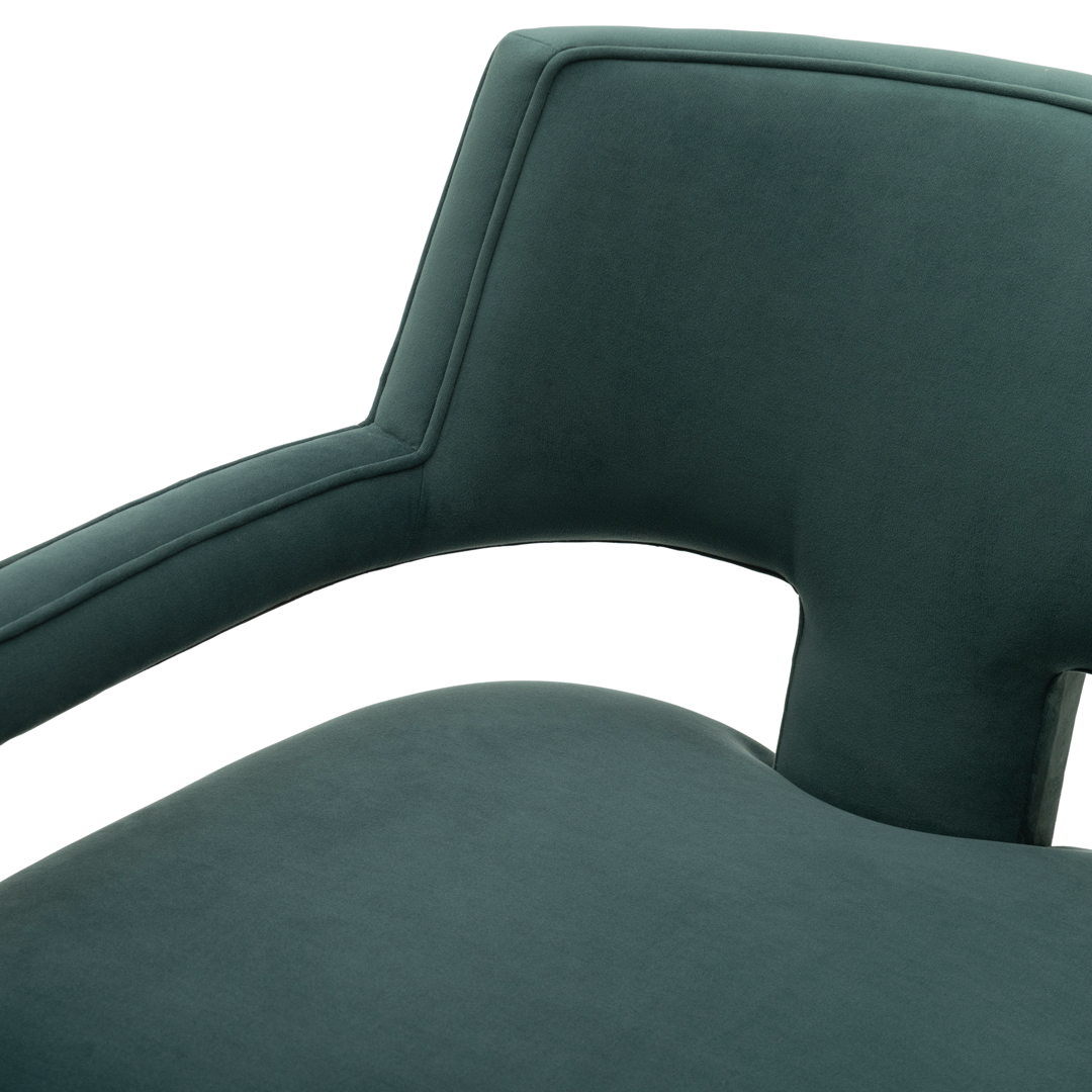 The Sinclair’s perfect proportions make it the centre of attention. A graciously curved back slopes into the embrace of low-slung arms.