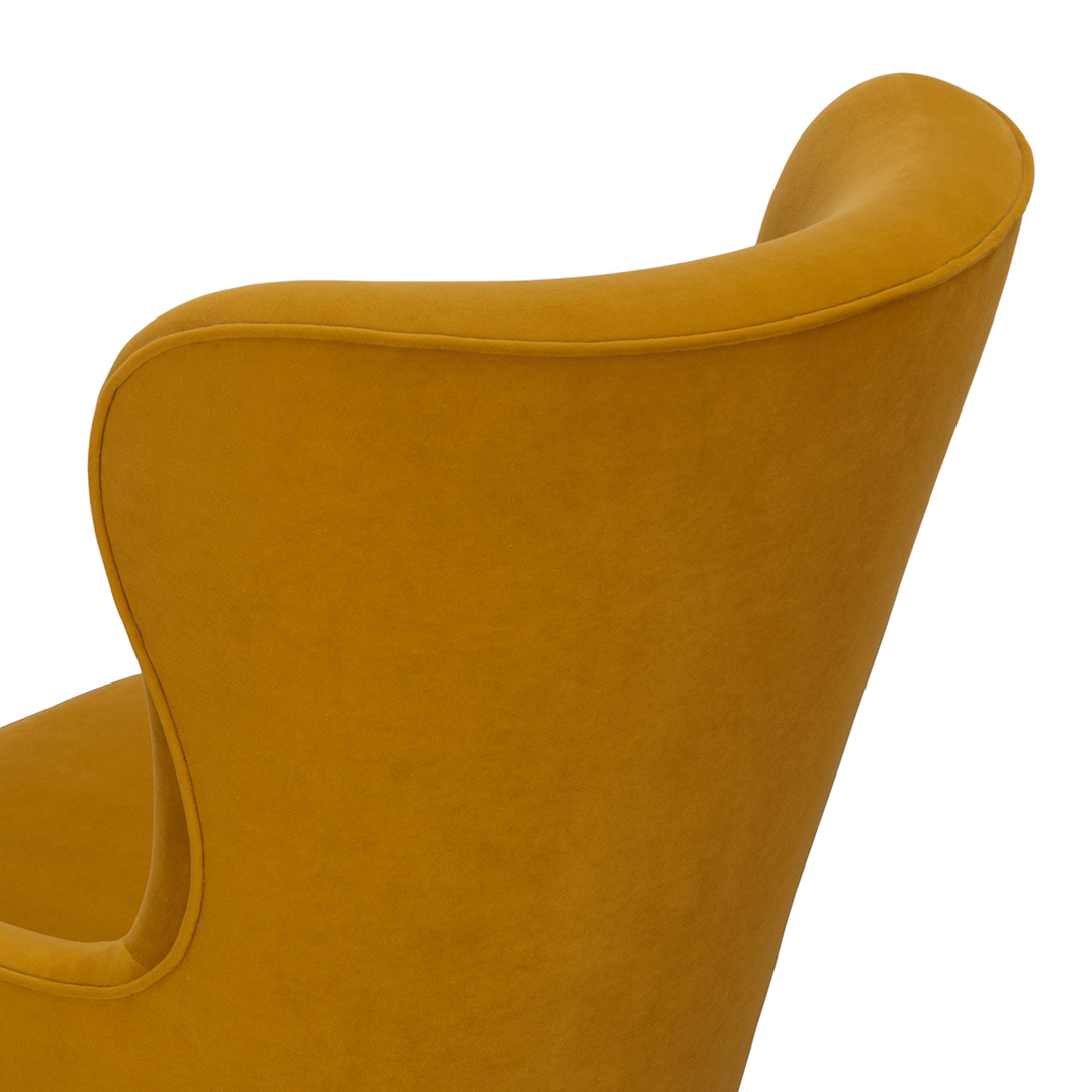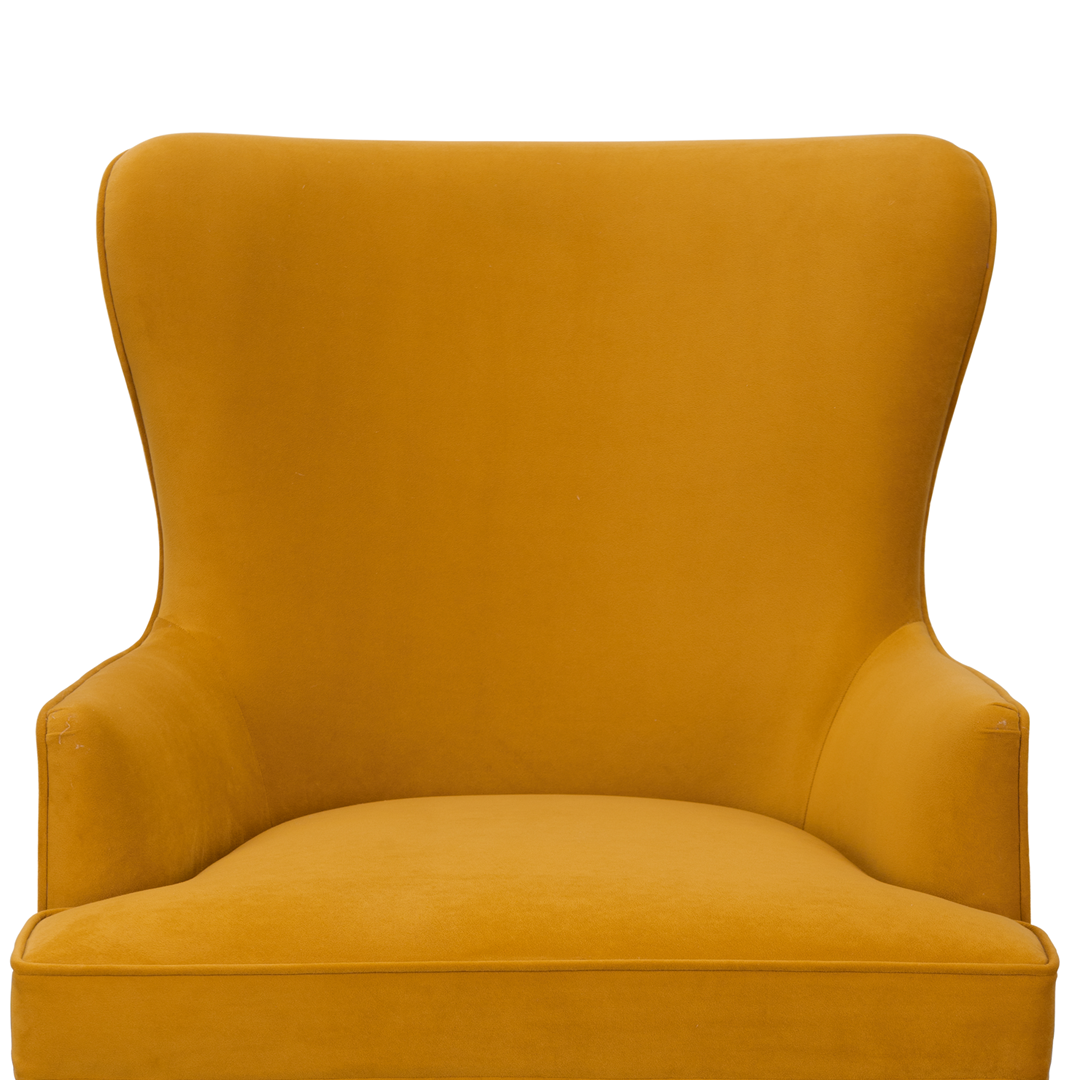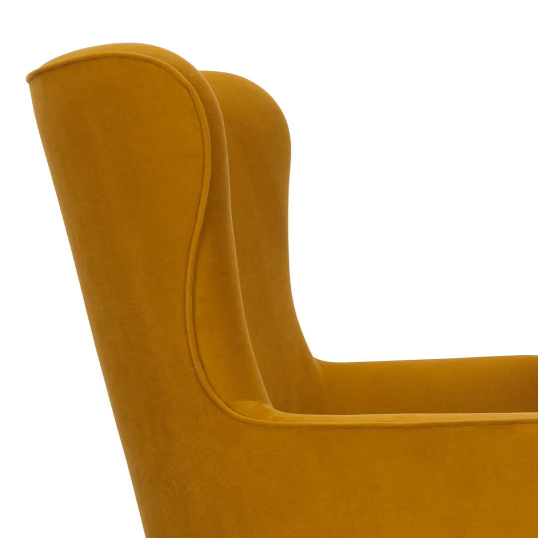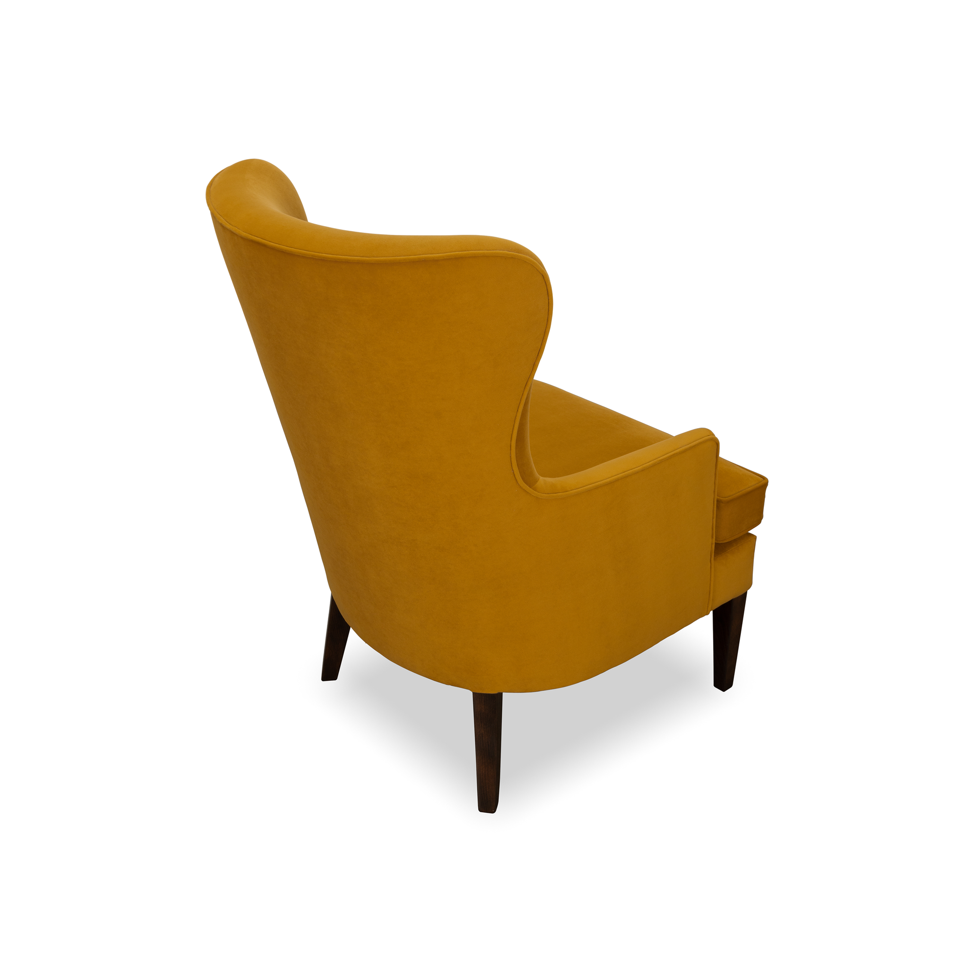 The Walter Armchair strikes a balance between retro flourish and contemporary ease. Its winged back and curved form recall a bygone era, while plush cushioning and hand-stitched detailing make it a modern comfort essential.